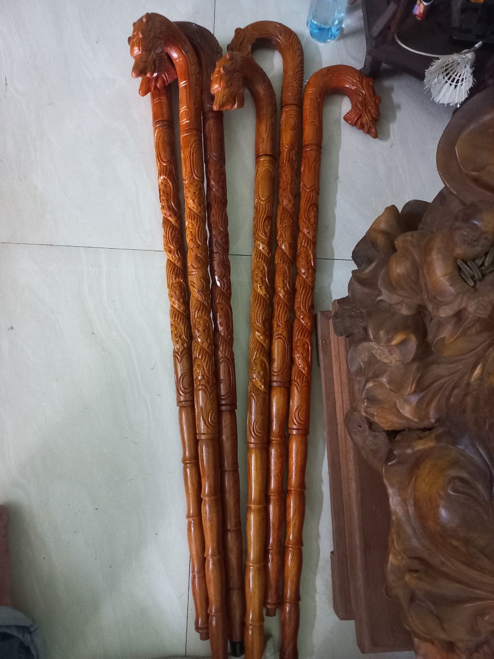 Đặc điểm nổi bật - Gậy batong dàng cho người già được tiện khắc phần đầu gồm có 2 dáng ,1 DÁNG đầu rồng ,2 dáng đầu uốn lượn ,phần thân được tiện khắc hình