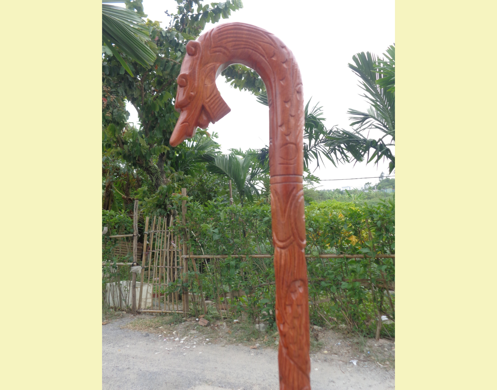 Đặc điểm nổi bật Gậy được khắc rồng cuốn từ đầu xuống chân tỉ mỉ ,tinh xảo kỳ công .Đi hầu hết tất cả mọi chi tiết góc ngách nội dung hoa văn của gậy