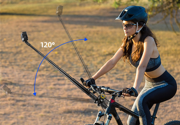 - Điều chỉnh thuận tiện: giá ôm cho xe đạp có thể được xoay và điều chỉnh bằng cách xoay lỗ vít, và góc có thể điều chỉnh 120 °. - Đi kèm với kẹp bệ cần điều khiển, bạn có thể cài đặt gậy selfie vào tay lái xe đạp, xe máy hoặc xe đẩy, xe nôi trẻ em trong đường kính 32mm một cách dễ dàng.