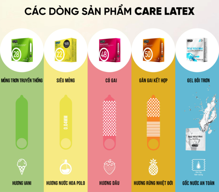 ✨Gel bôi trơn CARE dạng gói gốc nước lâu khô, an toàn, cho cảm giác siêu trơn, hương dịu nhẹ hộp 5 chiếc