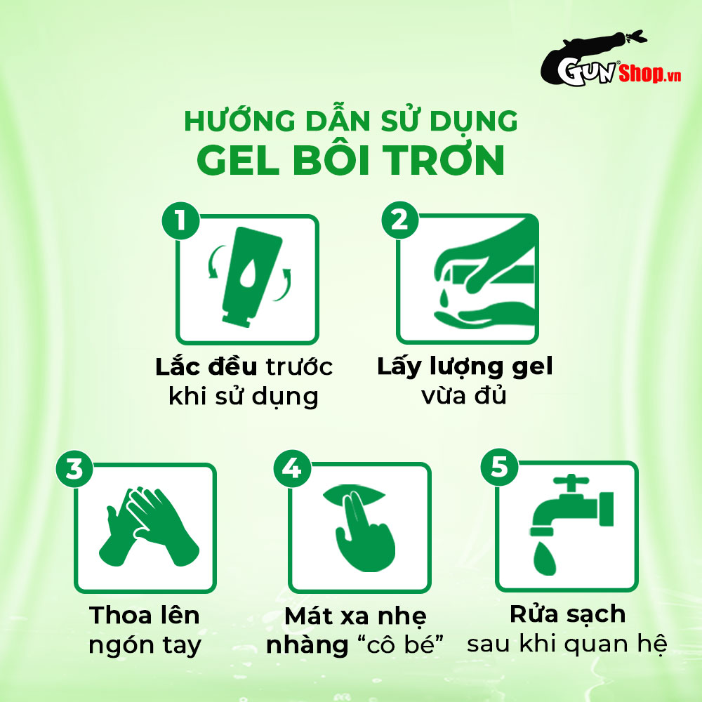 Cách dùng: Lắc đều sản phẩm trước khi mở, lấy một lượng vừa đủ gel bôi trơn ra tay. Tùy thuộc vào độ khô của "cô bé" mà lấy lượng gel sao cho phù hợp, bôi trực tiếp vào bên trong và ngoài “cô bé”.