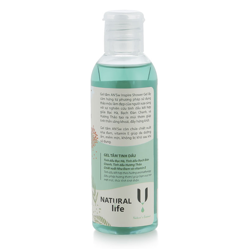 - Tinh Dầu giúp lọc sạch không khí và thư giãn tinh thần với mùi thơm thanh mát, tự nhiên. Cách sử dụng gel tắm AN'Sw Làm ướt cơ thể, cho một ít sữa tắm lên tay hoặc bông tắm, tạo bọt, thoa đều lên cơ thể, thư giãn rồi tắm lại với nước sạch. Trọng lượng gel tắm AN'Sw