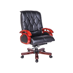 Mua tại TiktokGhế cao cấp bọc da thật tại phần tiếp xúc trực tiếp với nguời sử dụng. - Tựa nhiều đường may trang trí, có nẹp gỗ bên cạnh, tay ghế gỗ. - Ghế có chức năng điều chỉnh độ cao và ngả của ghế. - Chân xoay có bánh xe, có thể di chuyển.