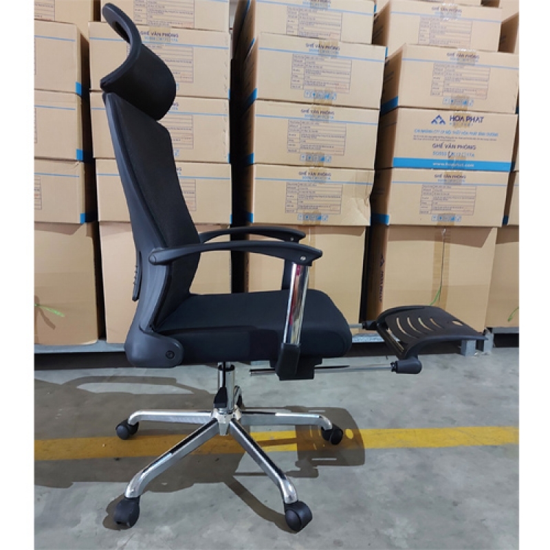 Mô tả: Ghế lưới lưng cao có tựa đầu bọc lưới, đệm mút bọc vải, chân gác nhựa, cơ chế ngả ra sau linh hoạt để nghỉ trưa tiện dụng.