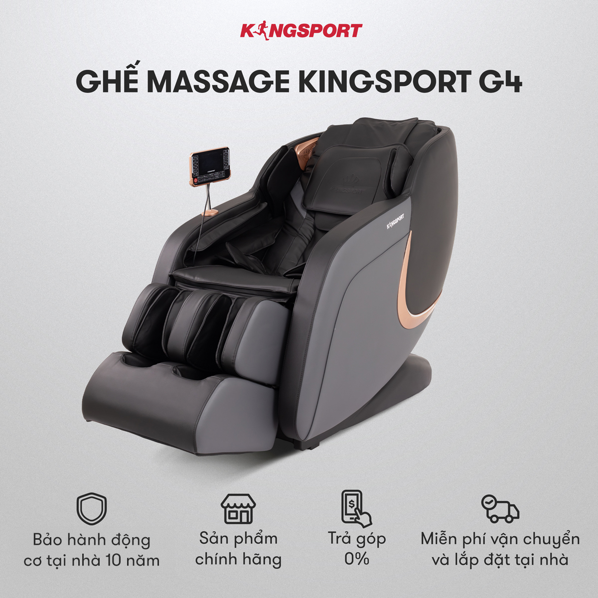 Dù là sản phẩm cao cấp hay bình dân như ghế massage KingSport Standard G4 thì thương hiệu đều đảm bao cao về sự ch.ấ.t lư.ợn.g khi sản xuất dựa theo tiêu chuẩn Hoa Kỳ, đáp ứng c.a.o kỳ v.ọ.n.g của khách hàng trong và ngoài nước. Cũng chính vì thế, các sản phẩm của KingSport đều đạt được những chứng nhận cao cấp đến từ quốc tế, giúp người dùng hoàn toàn an tâm khi trải nghiệm thư giãn trên ghế massage.