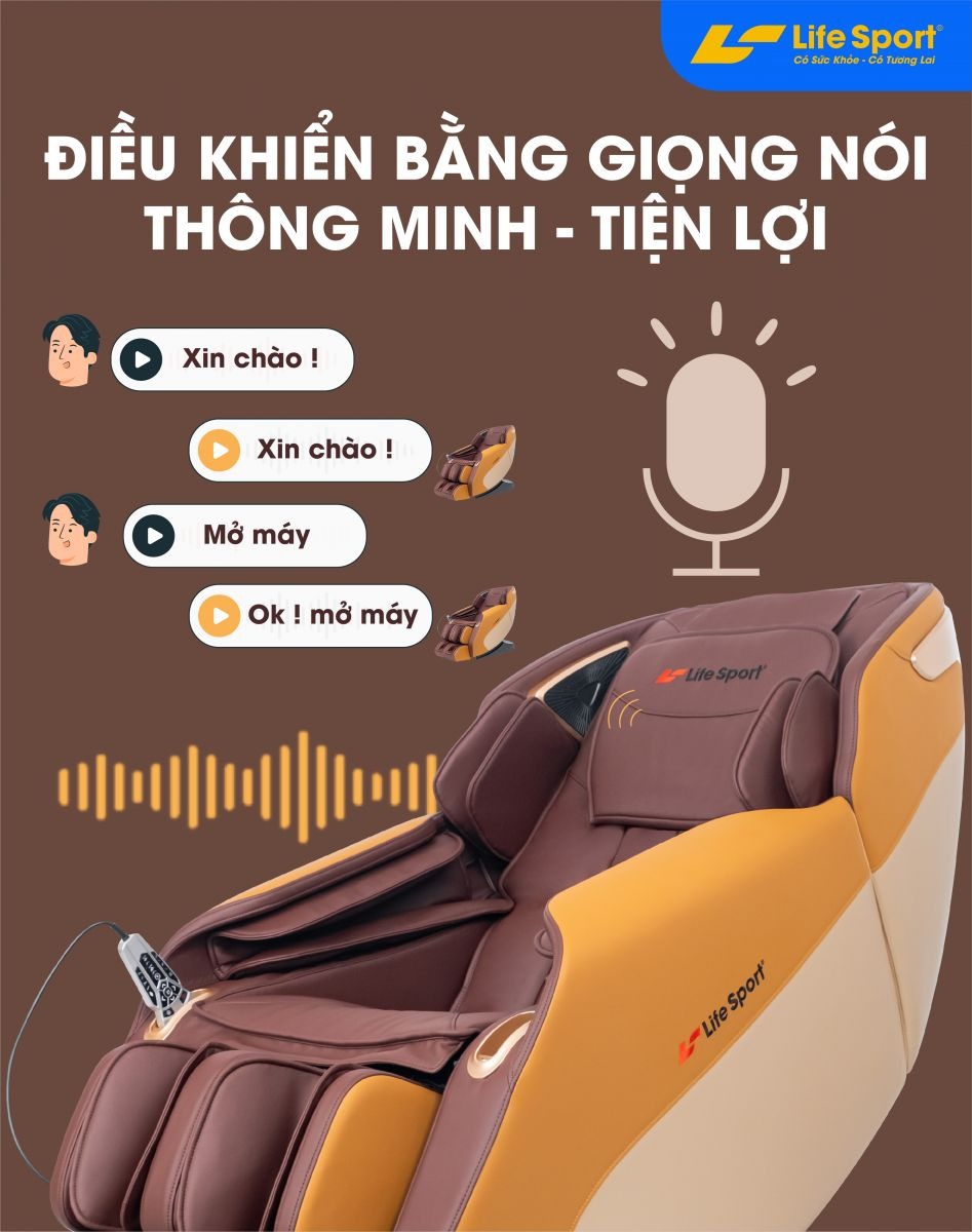 Nhờ được tích hợp sẵn các câu lệnh đơn giản, bạn chỉ cần nói vào phần loa ở 2 bên vai ghế là ngay lập tức nó sẽ phản hồi và thực hiện lệnh chỉ trong vòng vài giây. Tính năng này cực kỳ thích hợp cho những người lớn tuổi không rành về công nghệ hoặc mắt yếu, tay chân không linh hoạt.