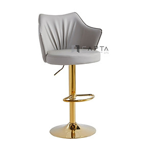 Ghế đảo bếp tăng giảm độ cao chân vàng CB2296B-P Nội thất Capta Ghế quầy bar nệm bọc da PU mềm màu xám nhạt chân tăng giảm thép mạ màu vàng - Màu sắc: Xám nhạt,