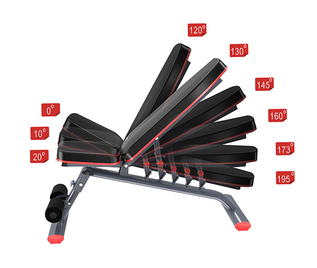 - Yên ngồi tập bọc nệm da cao cấp dày tới 7cm, được thiết kế thông minh và có thể điều chỉnh độ dốc dễ dàng để phù hợp cho nhiều bài tập khác nhau. Cụ thể, phần ghế ngồi có 3 mức điều chỉnh và phần tựa lưng có đến 6 góc độ điều chỉnh khác nhau. Bộ phận điều chỉnh rất chắc chắn, đảm bảo an toàn tuyệt đối cho người sử dụng.