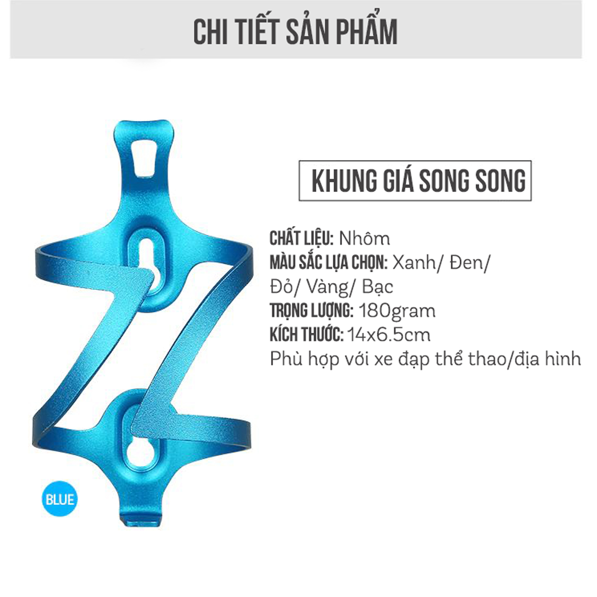 Mua tại TiktokGiá Đỡ Bình Nước Xe Đạp Bằng Kim Loại Nhôm Siêu Nhẹ Gắn Cho Xe Đạp Thể Thao (Tặng Kèm Phụ Kiện, Dụng Cụ Lắp Đặt) - Mai Lee Kèm Phụ kiện đinh ốc và dụng cụ lắp đặt Thiết kế hình song phương chắc chắn, lạ mắt Trọng lượng siêu nhẹ chỉ 180gram Bo góc trơn các góc cạnh tránh xước bình nước Kích thước: 14x6.5cm Phù hợp cho xe đạp địa hình, MTB, xe đạp đua thể thao Bo góc trơn các góc cạnh tránh xước bình nước Nhiều màu sắc lựa chọn: Xanh, Bạc, Vàng, Đỏ, Đen
