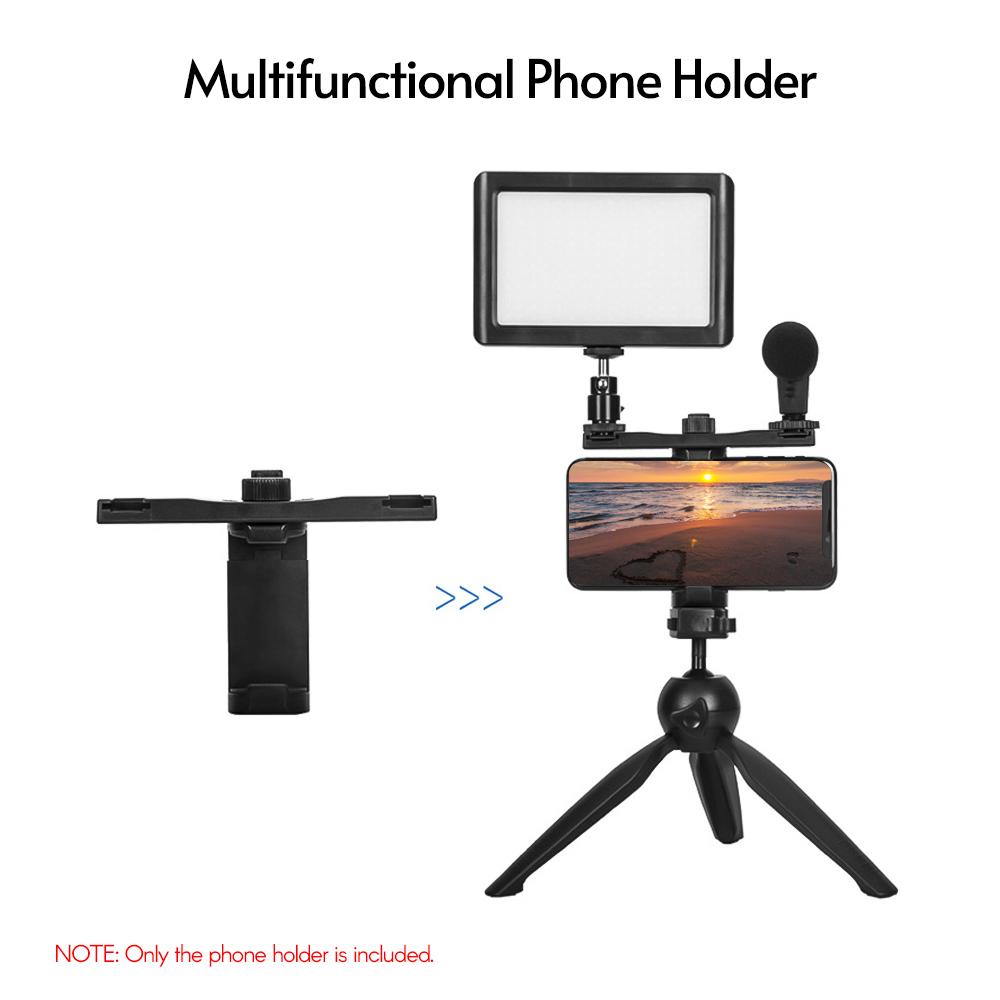 Mua tại TiktokFeature: Multifunctional phone holder, made of ABS material, lightweight and durable. Phone clip extended range is 6cm-11.5cm, compatible with most of smartphones on the market. Soft rubber pads cover the contact parts of phone and phone holder, no scratch to your smartphone. With dual cold shoe mounts for installing mini LED light or microphone to make your shooting more professional. 1/4 inch standard screw holes allows you to fix the phone clip to tripod stand for more stable usage. Specifications: Color: Black Material: ABS Compatible Phone Width: 6cm-11.5cm Item Weight: 76g/ 2.7oz Note: Only the phone holder is included. Package List: 1 * Phone Holder