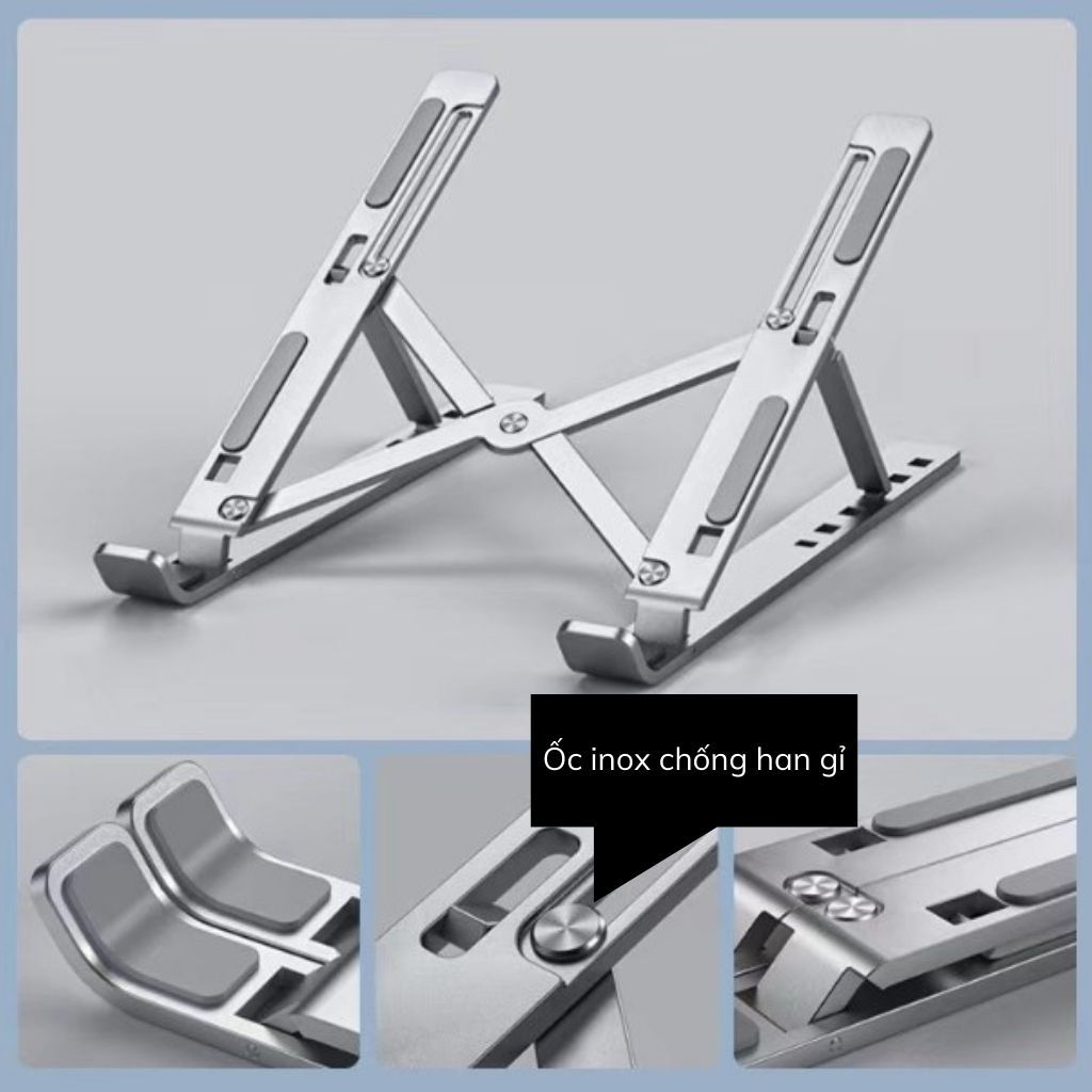 Stand Nhôm Tản Nhiệt Dành Cho Macbook, Laptop Có Thể Gấp Gọn Và Điều Chỉnh 6 Nấc Độ Cao Lucas - Đế máy tính xách tay: Hợp kim nhôm; điều chỉnh; có thể gập lại