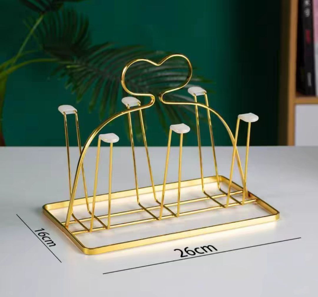 Giá úp ly, kệ úp cốc, chất liệu hợp kim mạ vàng sang trọng, Kèm khay hứng nước