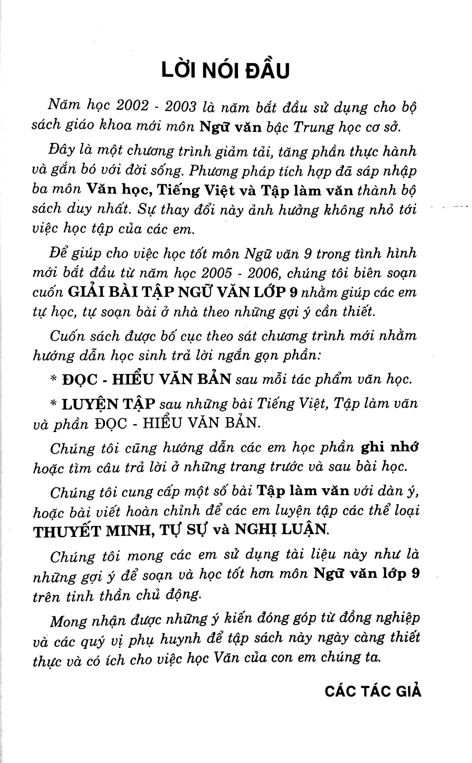 Giải Bài Tập Ngữ Văn 9 (Tái Bản 2022) Cuốn sách biên soạn đáp ứng trọng tâm các yêu cầu về kỹ năng và kiến thức cần có cho các em khi học môn Ngữ văn nói chung và môn Tập làm văn nói riêng. Cùng với đó, cuốn sách cũng biên soạn nhiều bài văn củng cố, mở rộng – nâng cao kiến thức, kĩ năng và tổ chức hệ thống đề bài để học đi đôi với hành. Với nội dung phong phú, đa dạng, hi vọng cuốn sách sẽ là tài liệu bổ ích đối với các em học sinh.