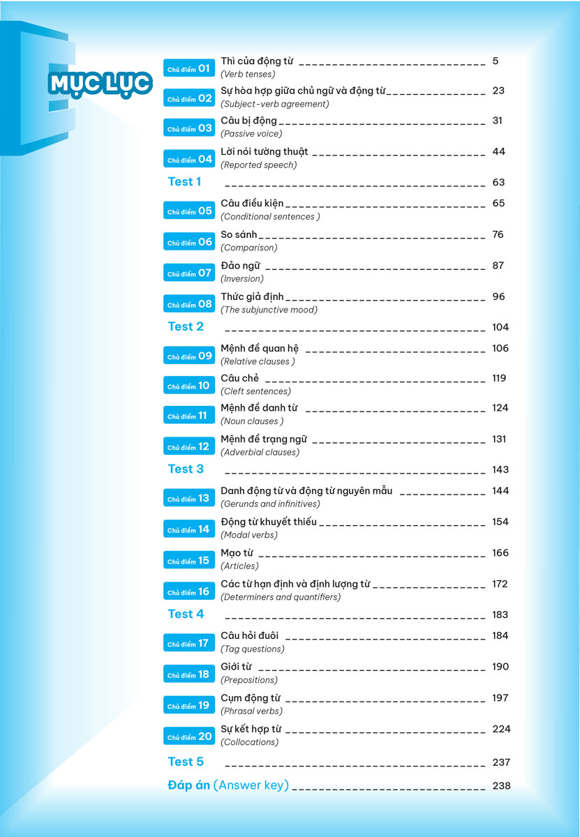 Ngoài ra, sau mỗi 4 chủ điểm ngữ pháp sẽ có 1 bài test liên quan đến những kiến thức ngữ pháp vừa học, giúp các em tự đánh giá chính xác năng lực của bản thân và lên kế hoạch ôn luyện phù hợp.