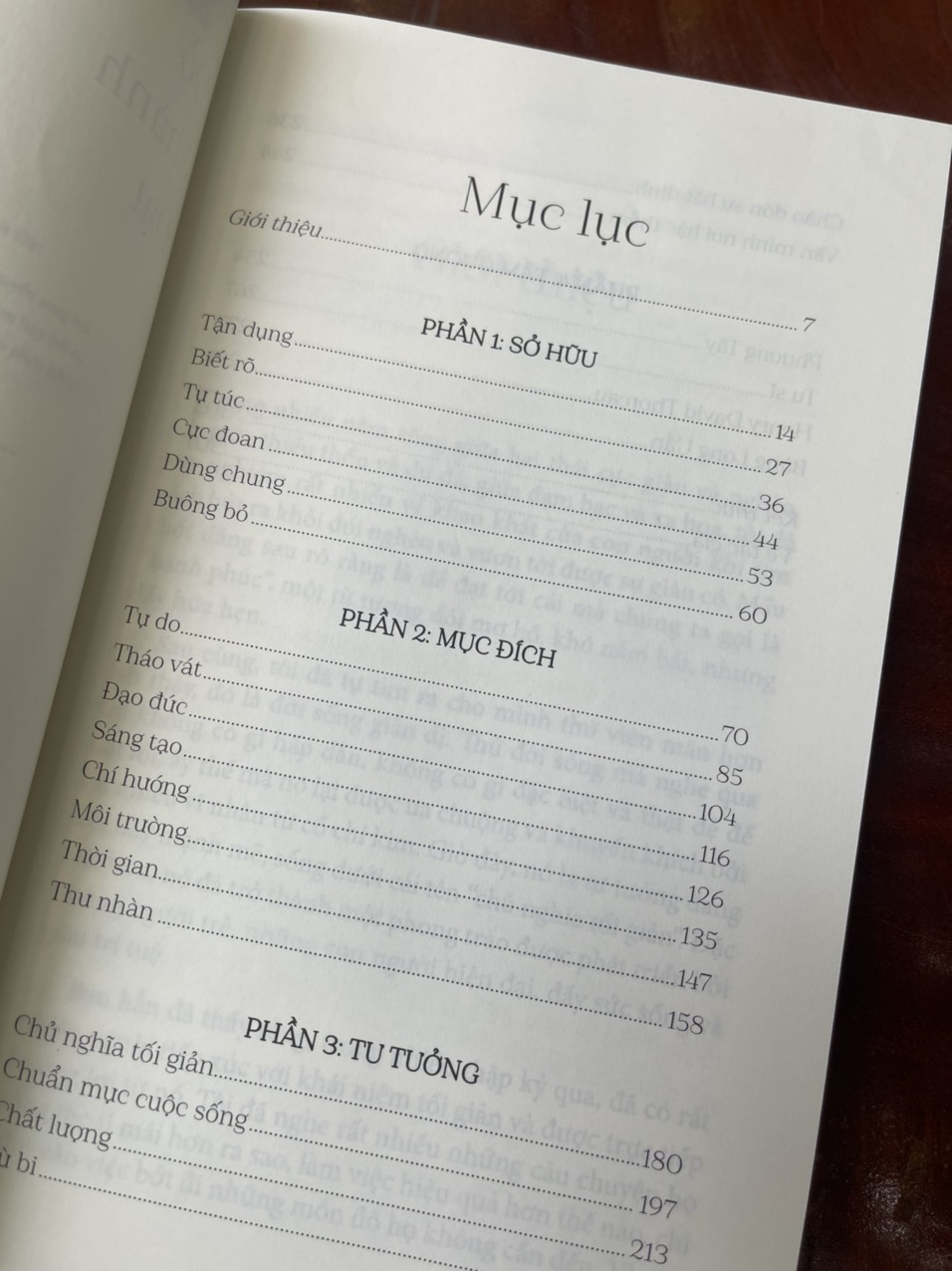 Sau cùng, tôi đã tự tìm ra cho mình thứ viên mãn hơn hết thảy, đó là đời sống giản dị. Thứ đời sống mà nghe qua thì không có gì hấp dẫn, không có gì đặc biệt và thật dễ để đạt tới, ấy thế mà nó lại được ưa chuộng và khuyến khích bởi rất nhiều vĩ nhân từ cổ chí kim. Giờ đây, nó là tư tưởng đang trỗi dậy mạnh mẽ, sống dưới cái tên “chủ nghĩa tối giản”. Đặc biệt hơn, nó đã trở thành một phong trào được. phát triển bởi những người trẻ, những con người hiện đại, đầy sức sống và giàu trí tuệ.”