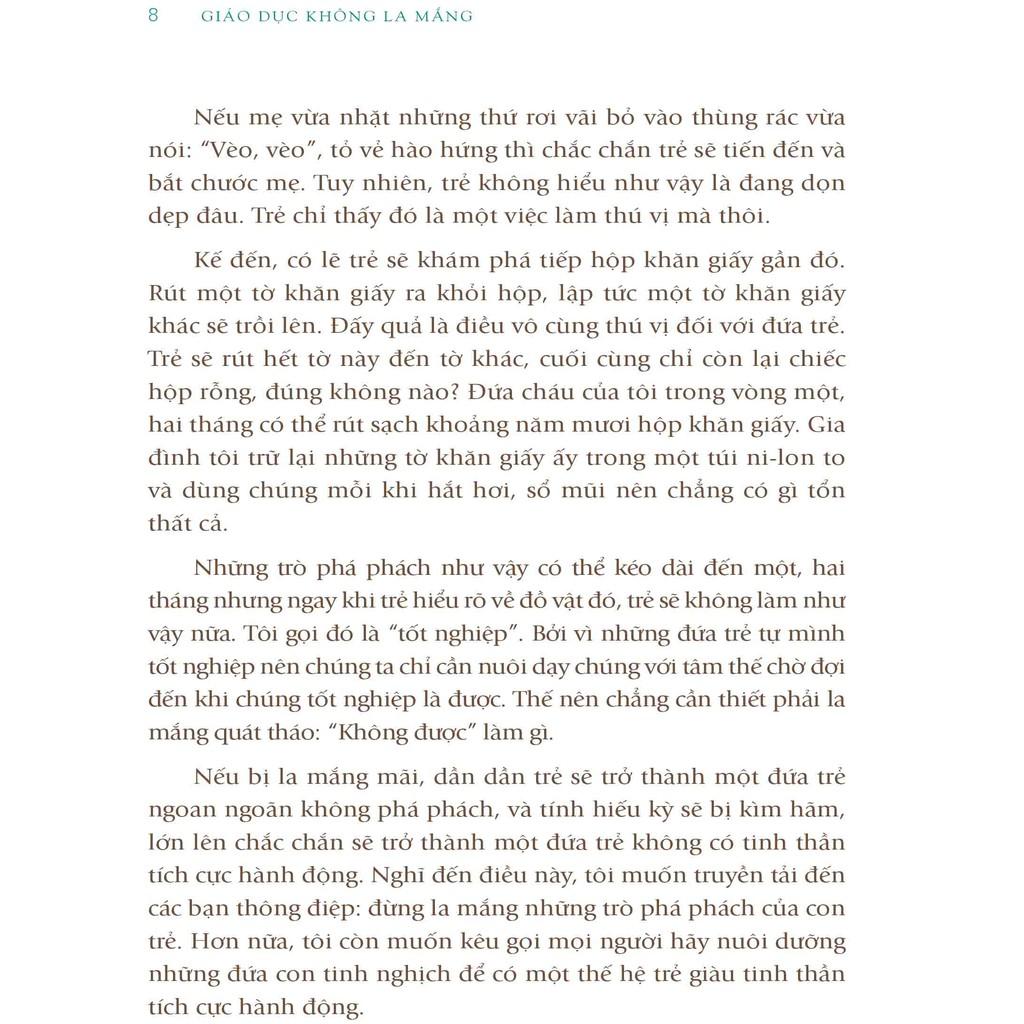 Những đứa trẻ được nuôi dưỡng “sự hăng hái” và “sự cảm thông” thì lớn lên sẽ trở thành những thanh niên ưu tú. Khi hoàn thành Giáo dục không la mắng, các bậc phụ huynh sẽ hiểu được rằng những trò phá phách là nuôi dưỡng tính hài hước và óc sáng tạo và hãy nhớ rằng hạnh phúc là khi trẻ được sống đúng như là một đứa trẻ. Gooda tin rằng cuốn sách sẽ mang lại kiến thức thật bổ ích cùng những trải nghiệm thật tuyệt vời, hy vọng đây sẽ là 1 cuốn sách quý trên kệ sách của bạn!