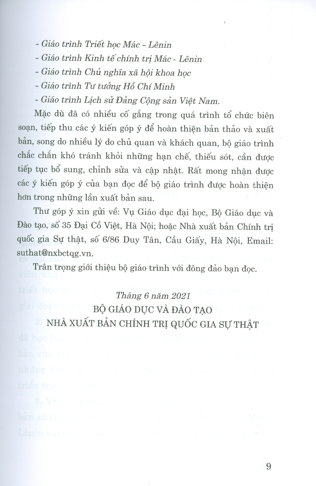 Giáo trình do Ban biên soạn gồm các tác giả là nhà nghiên cứu, nhà giáo dục thuộc Viện Triết học - Học viện Chính trị quốc gia Hồ Chí Minh, các học viện, trường đại học, Viện Triết học - Viện Hàn lâm Khoa học xã hội Việt Nam, tổ chức biên soạn trên cơ sở kế thừa những kết quả nghiên cứu trước đây, đồng thời bổ sung nhiều nội dung, kiến thức, kết quả nghiên cứu mới, gắn với công cuộc đổi mới ở Việt Nam, nhất là những thành tựu trong 35 năm đổi mới đất nước.