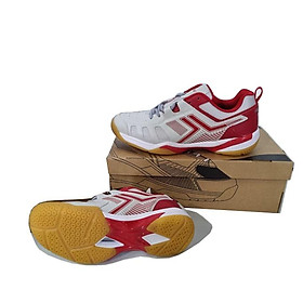 Giày Cầu Lông Mới Nhất Đa Năng Trắng Sọc Đỏ Kiểu dáng thể thao, mạnh mẽ,phù hợp với các bạn trong độ tuổi 12-35 - Đế cao su bền chắc, có độ bám cao. -