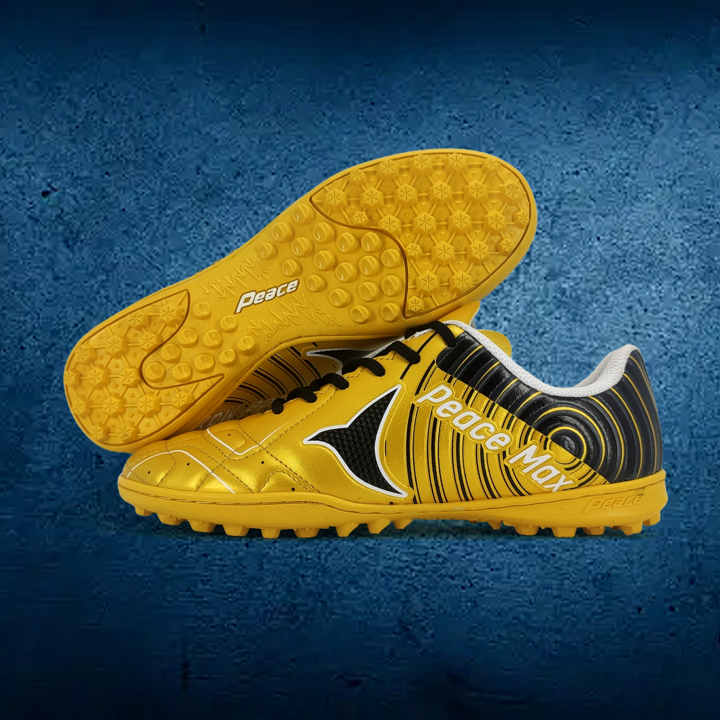 Giày đá bóng Peace Max Tornado với mã sản phẩm Ps1234 thuộc chuỗi dòng sản phẩm giày đá bóng của Thương hiệu Peace Shoes of Peace        Đặc tính kỹ thuật:       - Da PU cao cấp, êm ái tăng tối đa khả năng cảm giác bóng.        - Đế cao su êm ái, kiểu đinh TF giúp hạn chế trơn trượt, bám sân.                                                     GIÀY ĐÁ BÓNG SÂN CỎ NHÂN TẠO, GIÀY VIỆT DÀNH CHO NGƯỜI VIỆT        Giày Peace có form giày ôm chân, tạo sự thoải mái. Phần đế cao su bền chắc cùng các đường cắt họa tiết chạm nổi đầy tinh tế giúp chống trơn trượt. Giày dạng cột dây nên rất dễ dàng điều chỉnh để thay đổi kích thước sao cho phù hợp nhất. Với kiểu dáng và thiết kế trẻ trung năng động, đây sẽ là món đồ trong thể thiếu của những chàng trai yêu thể thao đặc biệt là bộ môn thể thao vua này.      - Nhưng không dừng lại ở mẫu mã của sản phẩm giày, Peace muốn mang đến một sản phẩm thủ công của người Việt làm ra, hoàn toàn chất lượng, mang lại cảm giác thoải mái dễ chịu cho người dùng và đặc biệt hơn nữa là sự tự tin không kém phần sang trọng và tinh tế.      - Những đôi giày tại Peace được chăm chút kỹ lưỡng từng lớp keo dán hay đường kim mũi chỉ của những người thợ lành nghề lâu năm. Chọn lựa kỹ càng tất cả những vật liệu chất lượng để tạo nên đôi giày kiểu dáng đúng chuẩn khí động học. Hình ảnh bên Peace chụp giống sản phẩm thật. Chúng tôi cam kết hình ảnh và chất lượng bền bỉ lâu dài. Với mức giá phù hợp người thị trường nội địa bạn dễ dàng có thể sở hữu một đôi giầy đảm bảo về chất lượng, luôn tạo cảm giác thoải mái cho người dùng.     - Nếu bạn là chàng trai yêu môn thể thao đầy thách thức như môn đá bóng, thì giày Peace chính là sự lựa chọn hoàn hảo trong bộ sưu tập những thứ cần có để ra sân bóng tác chiến. Với thiết kế độc đáo và có những đường vân nổi trên thân lẫn đế giày, đã tạo nên một nét riêng biệt của giày Peace và đồng thời tạo nên một phong cách thời trang trên sân cỏ cho bạn.     Cách lựa chọn size giày