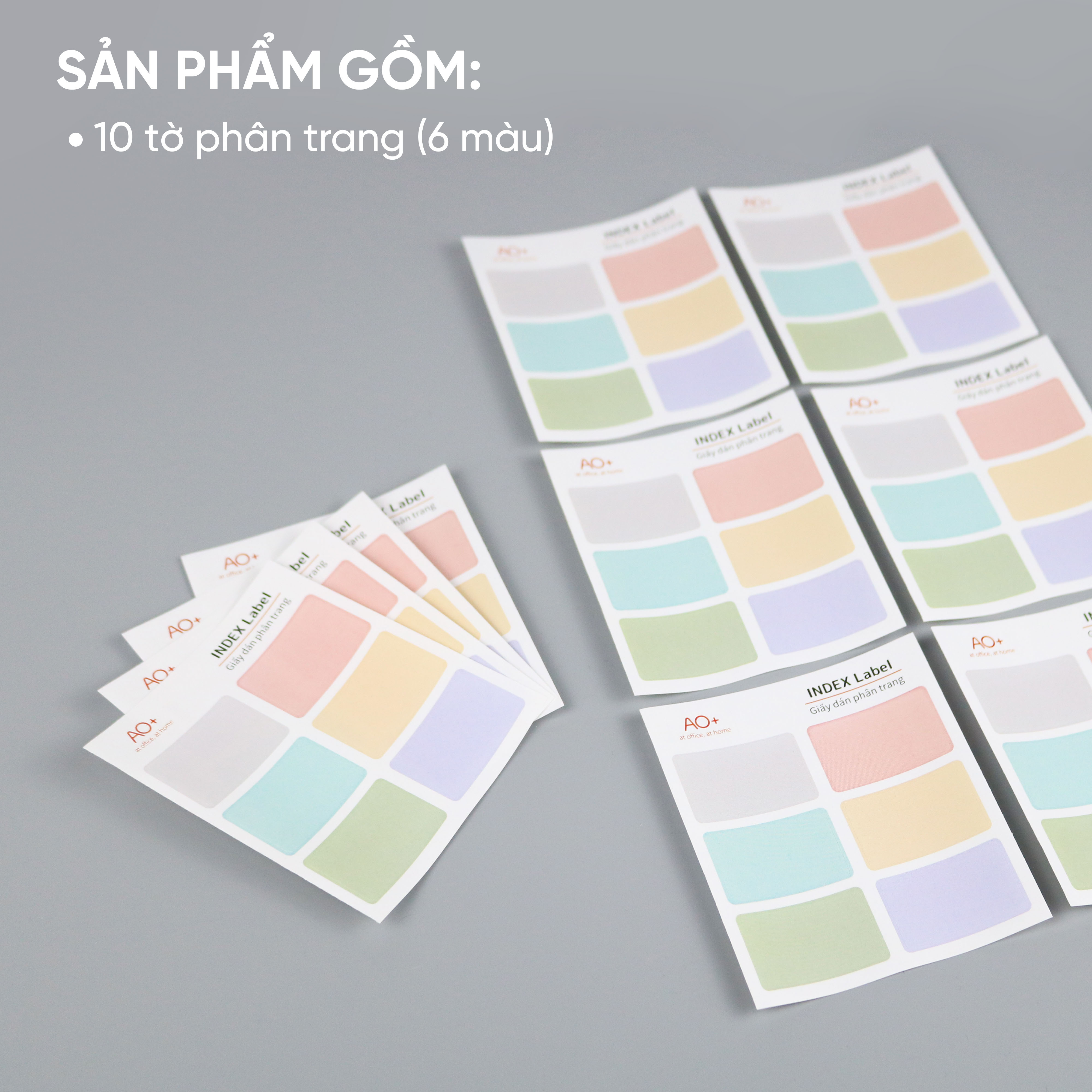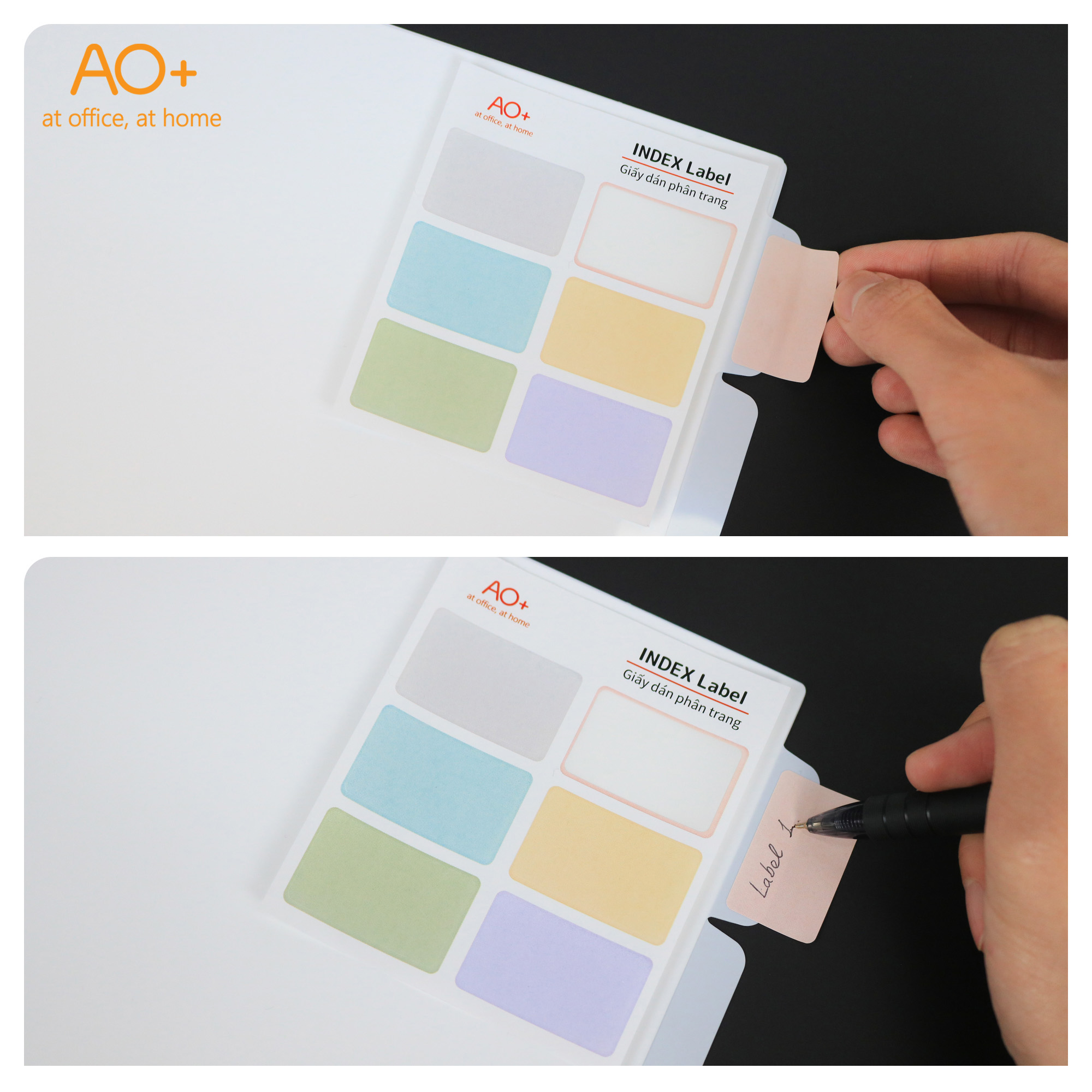 Giấy dán phân trang AO+ (giấy note ghi chú) là sản phẩm nhỏ gọn, dễ dàng sử dụng để phân loại tài liệu, ghi chú thuận tiện hơn. Sản phẩm sử dụng kèm bìa phân trang, bìa còng, sổ còng...