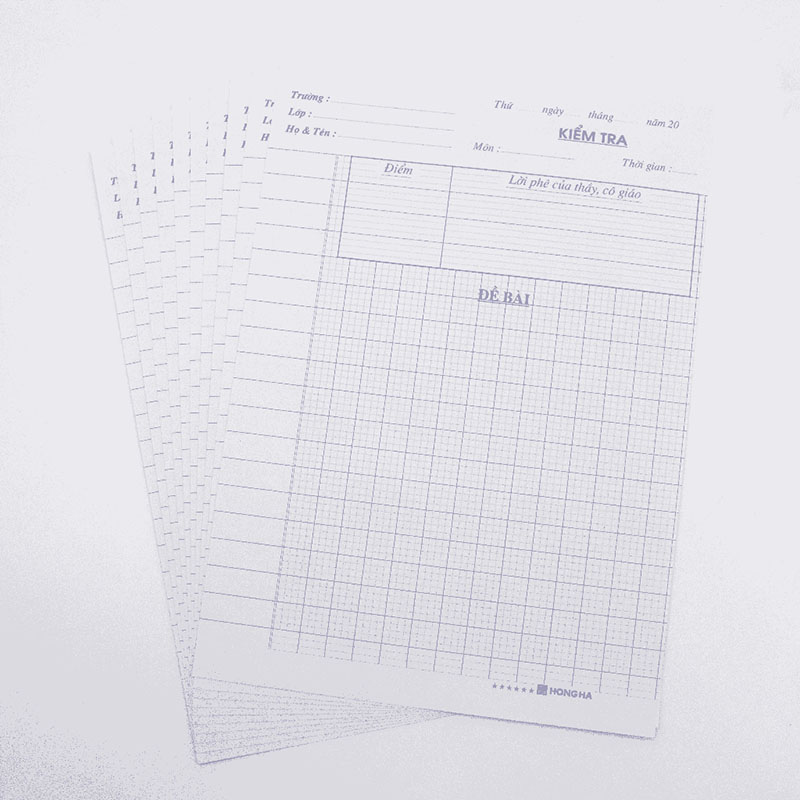 Giấy kiểm tra cấp 1 Hồng Hà 4 ô li vuông 15.000 đ/ 1 tập 15 tờ đôi