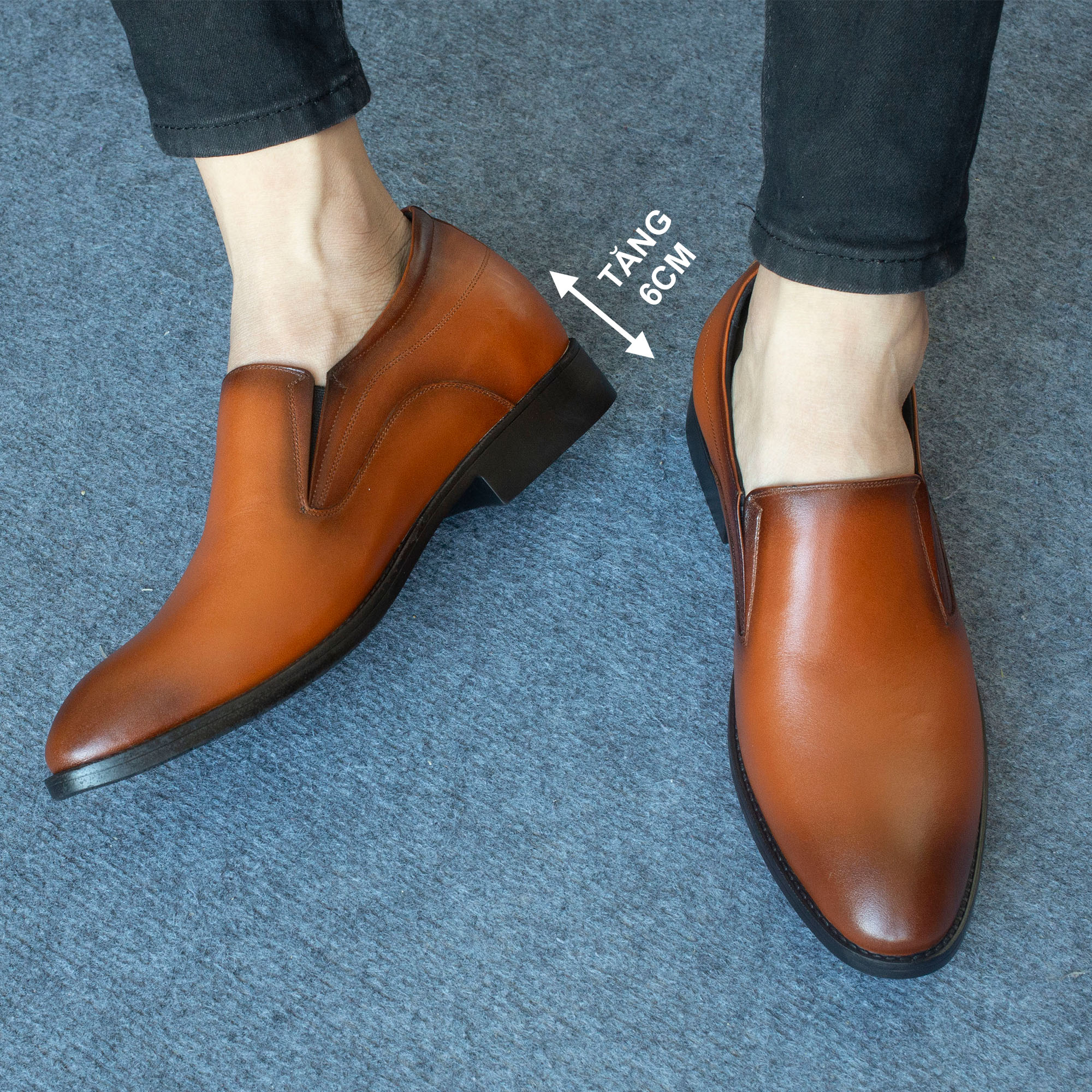 Giày lười da bò tăng chiều cao 6cm mã Gc08