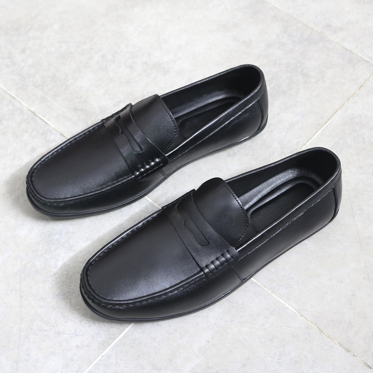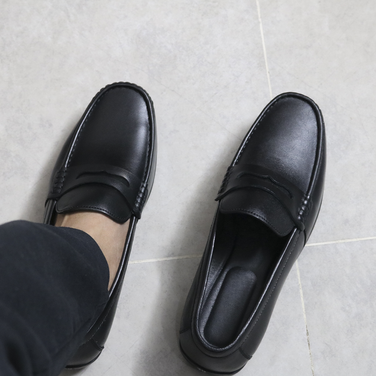 Giầy lười nam slipon da bò thật, đế cao su khâu liền da chắc chắn