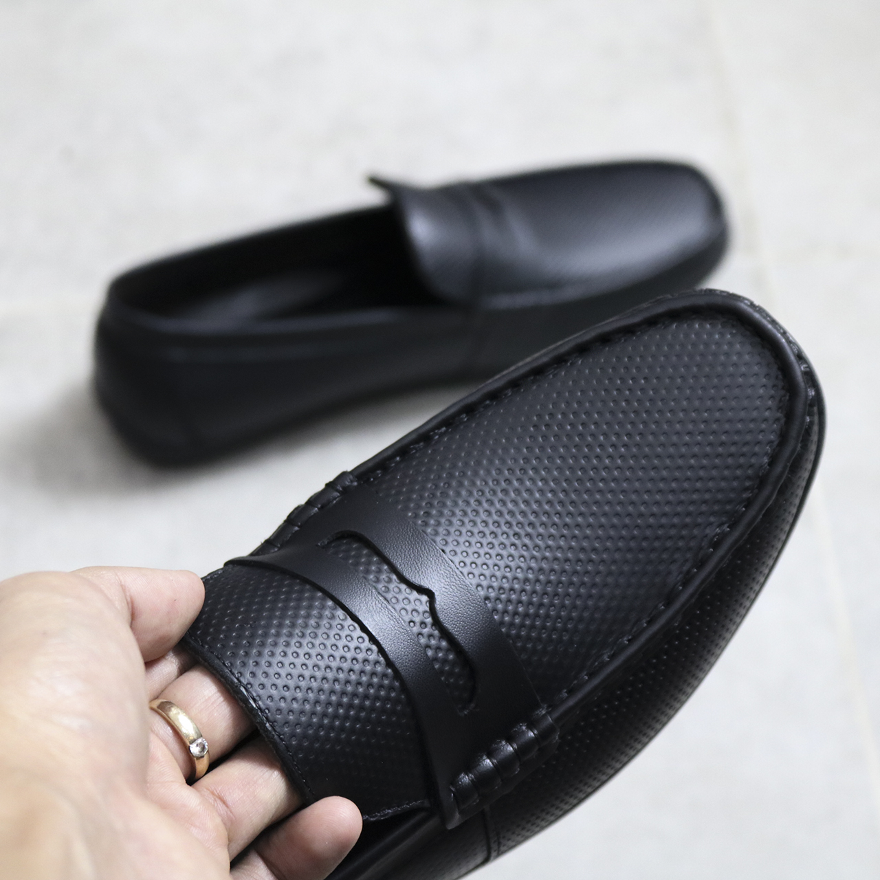 Mua tại TiktokGiày lười nam GL66 với thiết kế tối giản, dễ kết hợp cùng trang phục. Chất liệu da bò dập vân tròn, chống nhăn gập giày hiệu quả. ( Vân dập trên bề mặt da, ko bị xuyên thủng nên khi sử dụng ko bị bụi , không bị ngấm nước). Kết hợp với đế cao su mềm, đế có khâu chỉ liền da chắc chắn.
