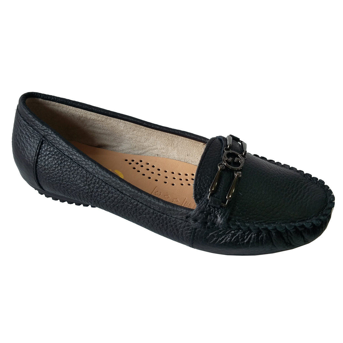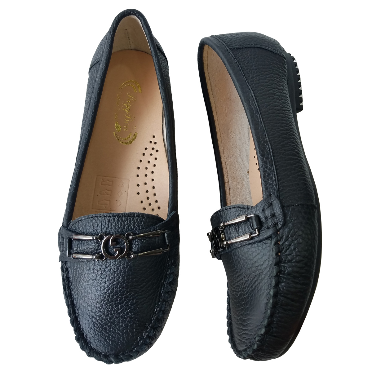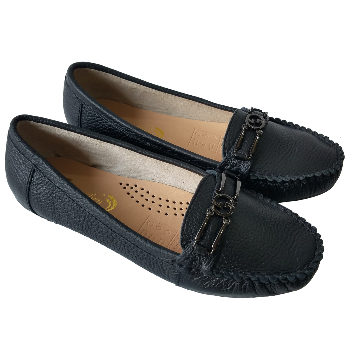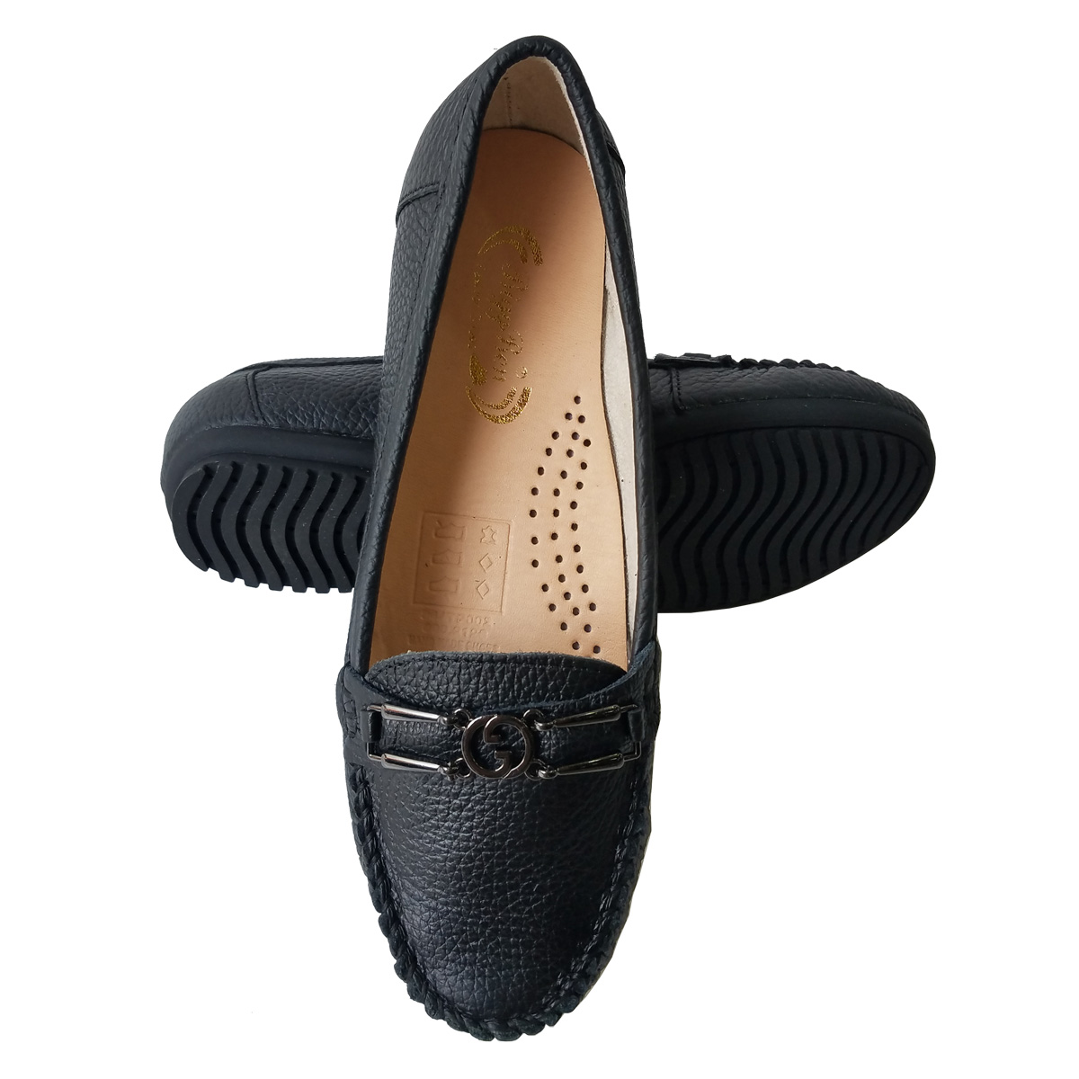 Giày Đế Bằng Giày Lười Nữ Da Bò Thật Siêu Mềm Sang Trọng Evelynv GB0916 (Đen)