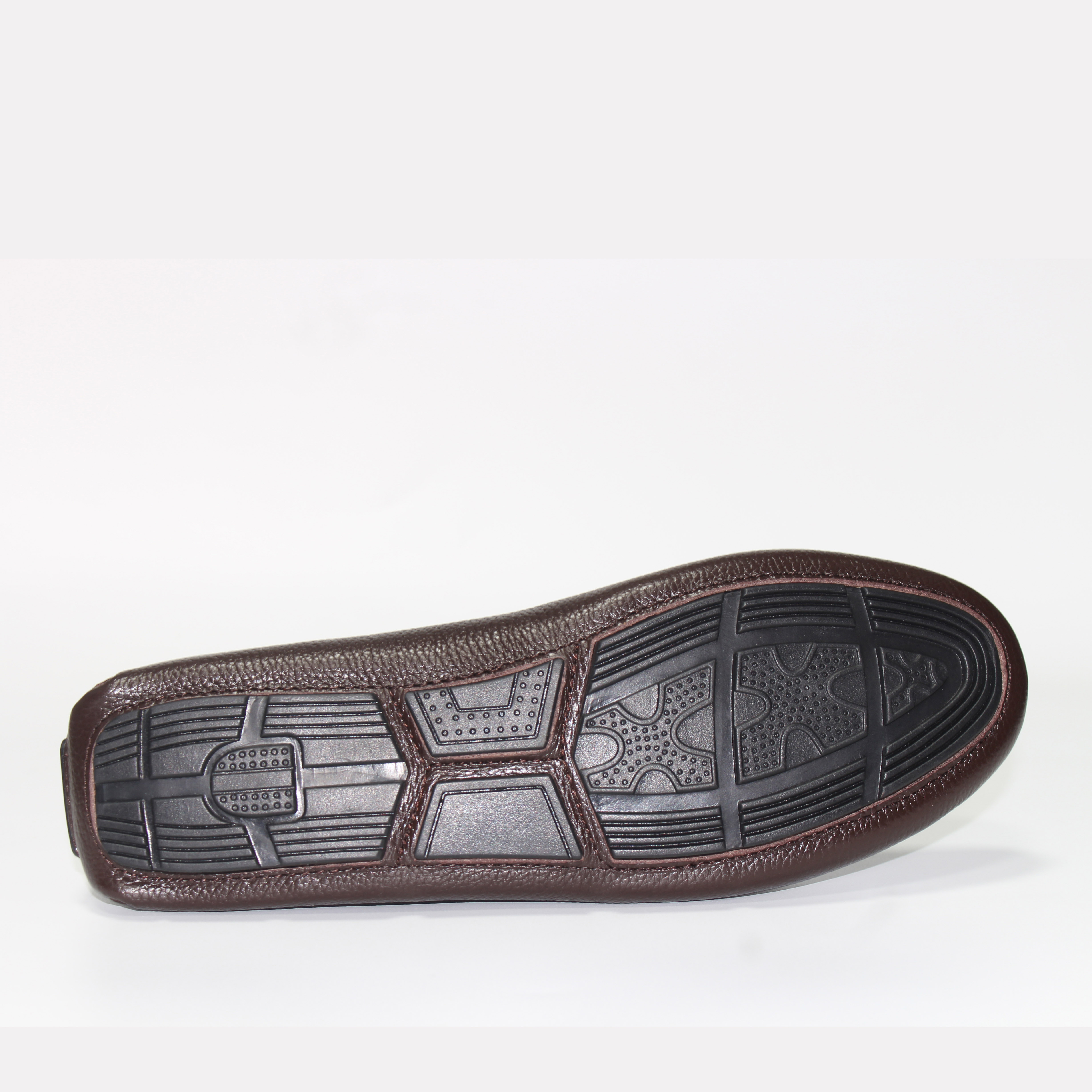 Trên tay mẫu Giày mọi da bò thật màu đen và nâu đỏ KK459