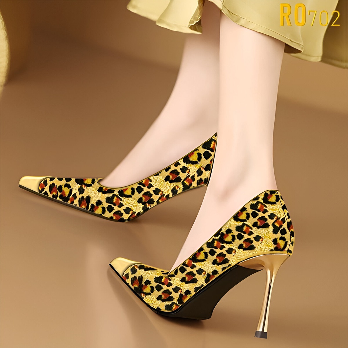 MÔ TẢ SẢN PHẨM: Giày nữ cao gót họa tiết beo ROSATA RO702 -8p- Beo - HÀNG VIỆT NAM - BKSTORE