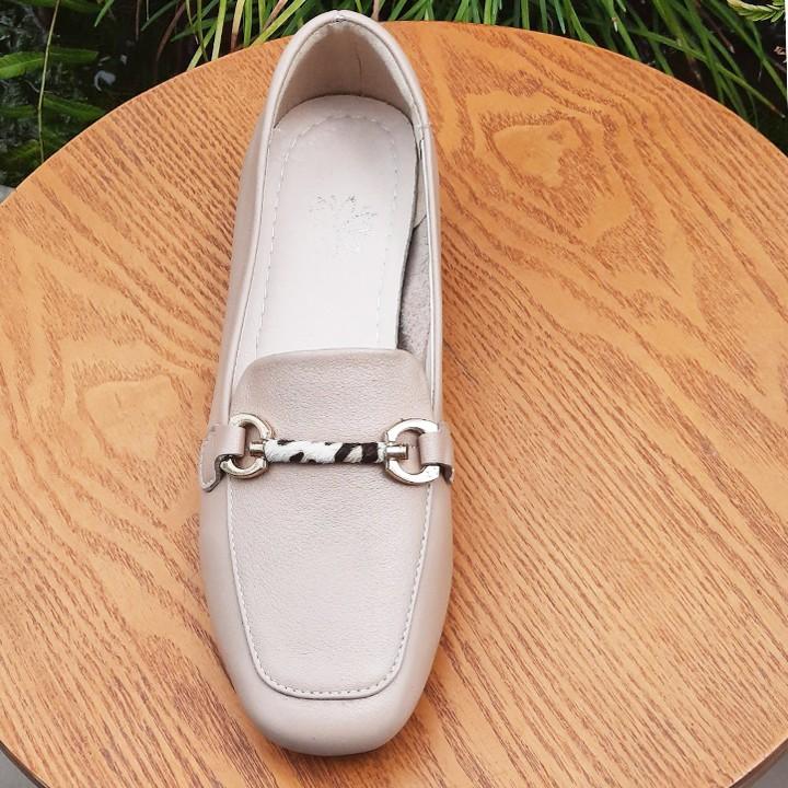 - Tên sản phẩm:Giày lười nữ da bò đế bệt khóa ngang Trường Hải nhiều màu GM123V - Chất liệu: giày được làm bằng da bò thật mềm mại tuyệt đối không bong tróc hay
