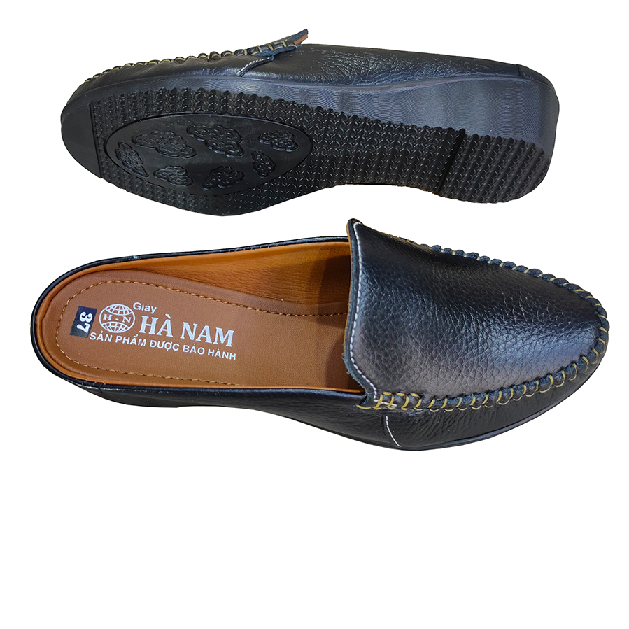 Giày đế xuồng trơn da bò đen Trường Hải