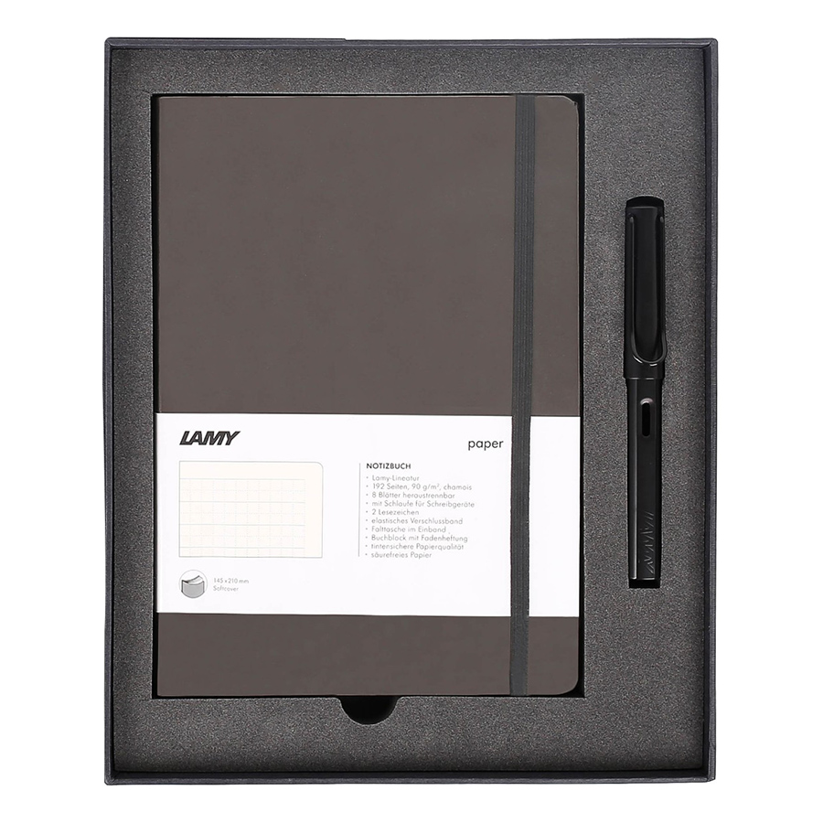Bộ quà tặng LAMY Gift set Notebook Softcover A5 đi kèm một chiếc bút máy LAMY Safari tinh tế. Tất cả được đặt trong một hộp quà LAMY sang trọng, thích hợp làm quà tặng