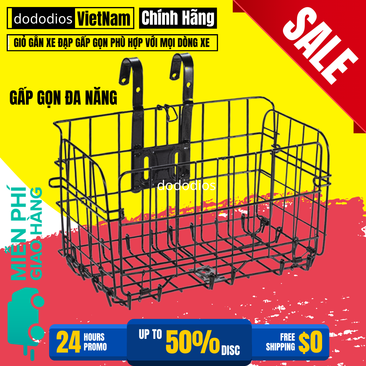 giỏ gắn xe đạp đựng đồ đa năng bền bỉ - giỏ treo xe đạp chịu lực tốt - hãng dododios Nơi sản xuất: Việt Nam Bảo hành: 1 đổi 1 tem bảo hành
