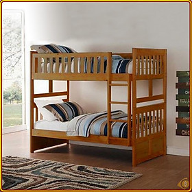Giường tầng cao cấp Carlisle được làm từ gỗ thông Mỹ với các ưu điểm như vân đẹp, ít mắt, độ cứng cao hơn hẳn các loại thông khác. Giường có 2 loại: 1. Loại 1m2/1m6: kích thước lọt lòng giường trên/dưới là 120x200 cm/ 160x200 cm, phủ bì 212x168x170 2. Loại 1m4/1m6: kích thước lọt lòng giường trên/dưới là 140x200 cm/ 160x200 cm, phủ bì 212x168x170 Khoảng cách giữa 2 tầng là 100 cm rộng rãi không sợ đụng đầu, kể cả với người lớn. Cầu thang gắn liền rộng 36cm. Chân trụ chịu lực dày 60x60 mm. Kệ sách tích hợp tiện lợi, giúp bé rèn luyện tính gọn gàng, ngăn nắp. Thang giường gỗ thông Mỹ đồng bộ với 13 thanh (cung sinh) dây cuộn. Tùy nhu cầu, Quý khách có thể chọn loại chỉ giường để gầm thông thoáng, thêm ngăn kéo để đồ hay thêm giường kéo tăng chỗ ngủ. Kích thước lọt lòng của giường kéo là 100x192 cm. Miễn phí lắp đặt tại TP.HCM, Bình Dương, Đồng Nai.