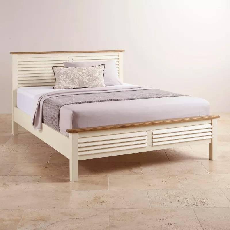 Giường đôi Shutter được thiết kế để tạo cảm giác thông thoáng và thoải mái trong phòng ngủ của bạn. Sản phẩm thuộc một phần của bộ sưu tập Shutter của chúng tôi, mang những nét tiêu biểu với màu sơn trắng kem nhẹ nhàng và màu gỗ sồi ấm áp. Trong đó, có các chi tiết lạ mắt, thay vì sử dụng tấm panel bằng phẳng, thì sẽ được thay bằng các nan gỗ ghép cố định bắt mắt. Khung giường được làm từ gỗ sồi trắng Mỹ nhập khẩu, đáp ứng tiêu chuẩn chất lượng cao của chúng tôi. Kể cả phần thanh giường được làm từ gỗ thịt chắc chắn, mang lại sự an toàn và vững chắc. Mua ngay đồ nội thất phòng ngủ Shutter hôm nay để hoàn thiện những gian phòng trong ngôi nhà của bạn.