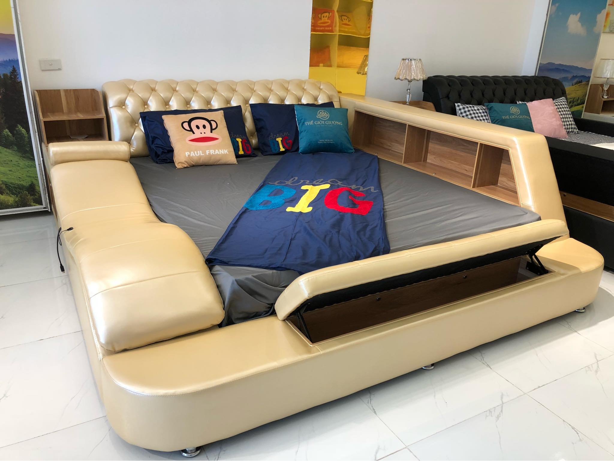 - Giường ngủ cao cấp có thành massage, thành hộc sách và hộc tiện ích, lọt lòng nệm 1m6 x 2m hoặc 1m8 x 2m. phủ bì 2m25 x 2m65
