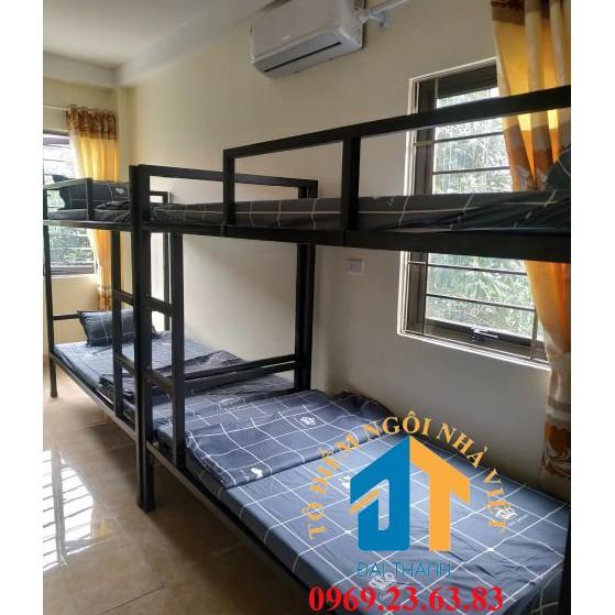 - Giao hàng nhanh qua đường dây nóng chăm sóc khách hàng: 0969.23.63.83 Các homestay hiện nay đang hướng đến nhóm khách hàng tiềm năng đó là giới trẻ. Do đó thiết kế càng bắt mắt, độc đáo, riêng biệt thì càng dễ thu hút. -Kích thước . 0,8mx2m, 1mx2m, 1m2x2m _Sắt trụ đứng: vuông 4x4. Sắt trụ vạt 3x6. – Chiều cao từ mặt đất lên tới vạt là 35cm. – Khoảng cách giữa 2 tầng là 1m. – Màu sắc: đen.