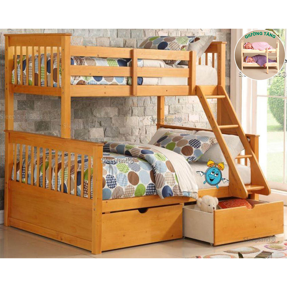 Giường gỗ 2 tầng 1m6 là một trong những chiếc giường tầng hiện đại đạt tiêu chuẩn quốc tế để xuất khẩu. Với mẫu mã sang trọng, độ bền cao cùng với sự tinh tế giường tầng gỗ thông 1m6 giúp bạn tiết kiệm được tối đa không gian trong gia đình. Với thiết kế chuyên biệt khi người lớn ngồi vào giường tầng 1 sẽ không chạm đầu vào tầng trên. Đây là đặc điểm khác biệt so với các dòng sản phẩm giường tầng khác.