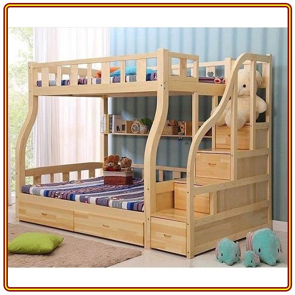 Giường 2 Tầng - 01 Cái *** NOTE: GIÁ TRÊN KHÔNG BAO GỒM HỘC KÉO - Kích Thước Toàn Phần : Dài 260 x Rộng 106 / 126 x Cao 100 / 170 / cm - Tầng Trên cùng : Rộng 106 cm - Tầng Giữa : Rộng 126 cm - Hộc Kéo ( Sát Đất )- 01 Cái - Ngang 94 x Sâu 42 x Cao 21 cm