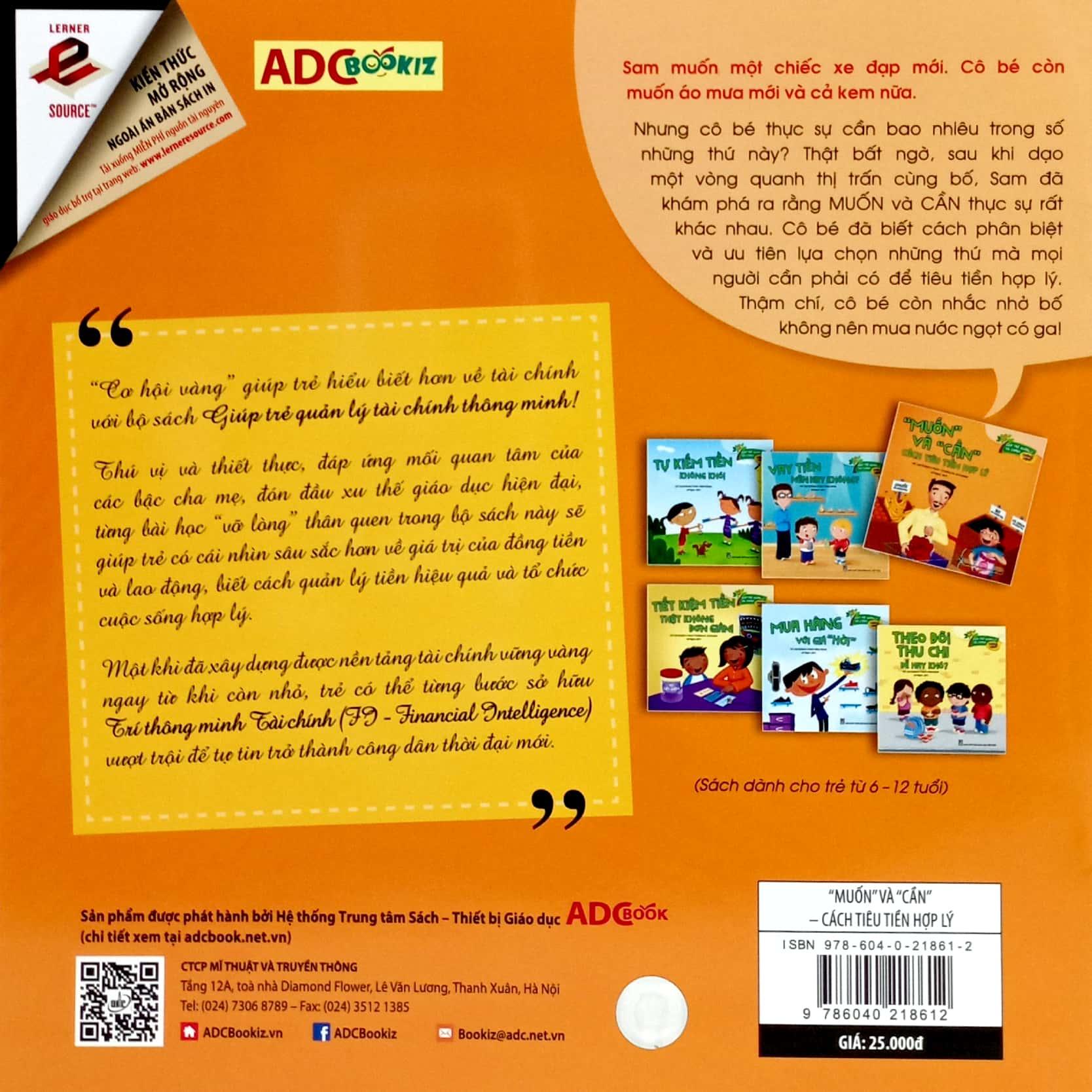 Cuốn sách “Muốn” và “cần” – Cách tiêu tiền hợp lý là một trong 06 cuốn thuộc bộ sách Giúp trẻ quản lý tài chính thông minh.
