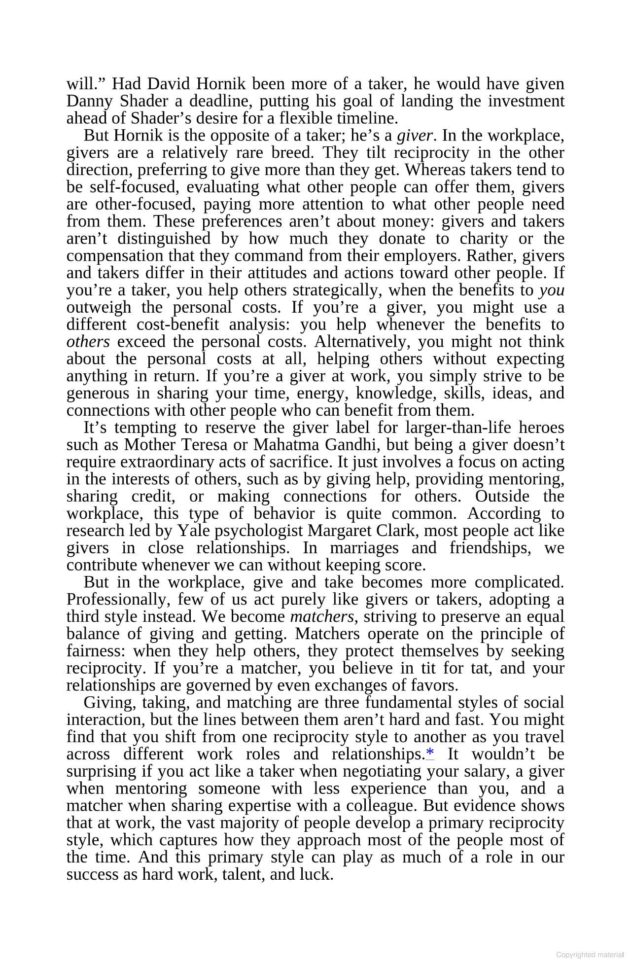 GIVE AND TAKE presents the fascinating secrets to givers' success. The results are unequivocal: givers gain big. Jack Welch, Richard Branson, Jon Huntsman Sr. - all of them are givers. In a world in which so many takers such as Bernard Madoff and Raj Rajaratnam have ruined lives and reputations, this book will reassure readers that the real power lies in becoming a giver. Since the vast majority of people aren't born givers, Grant not only presents the case for why givers win, he also offers their hidden strategies for winning.