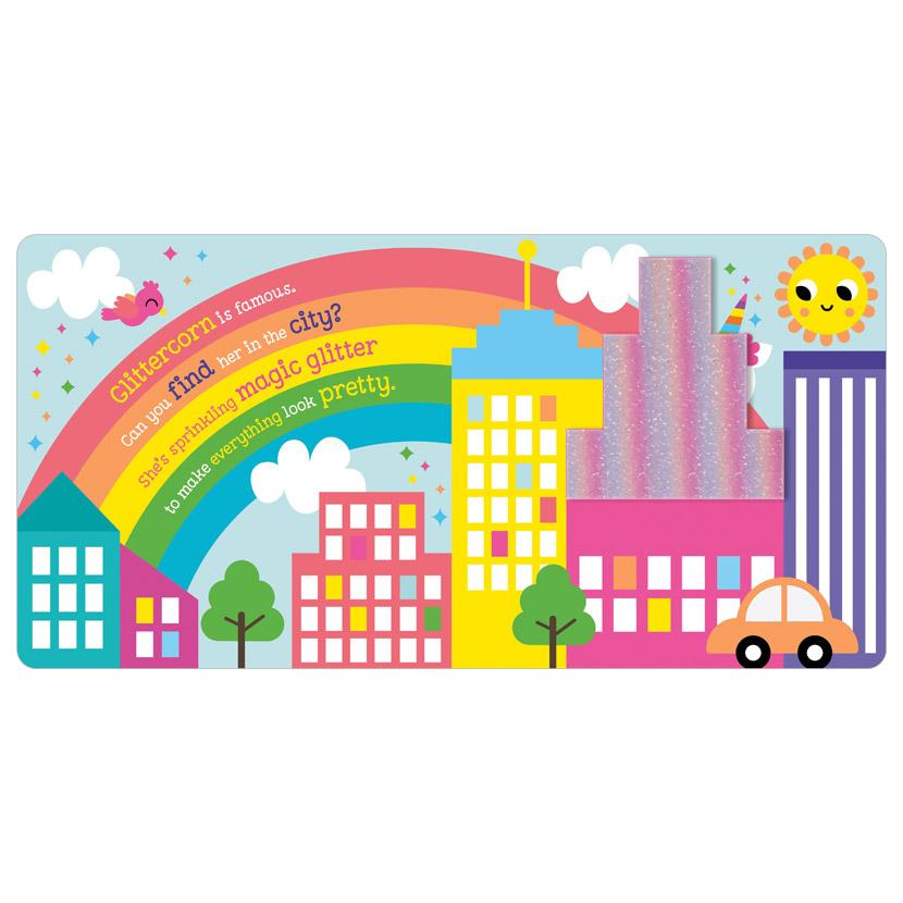 Meet Glittercorn, a sparkly unicorn who sprinkles glitter everywhere she goes. Join her as she travels around Glitter City visiting some special friends. Lift the sparkly, neon flap on every spread and discover lots of magical creatures, from a Pandacorn in a cake-pop tree, to a Kittycorn in her rainbow cloud bed. This is the perfect board book to read and enjoy together! A MAGICAL, GLITTERY LIFT-THE-FLAP BOOK!