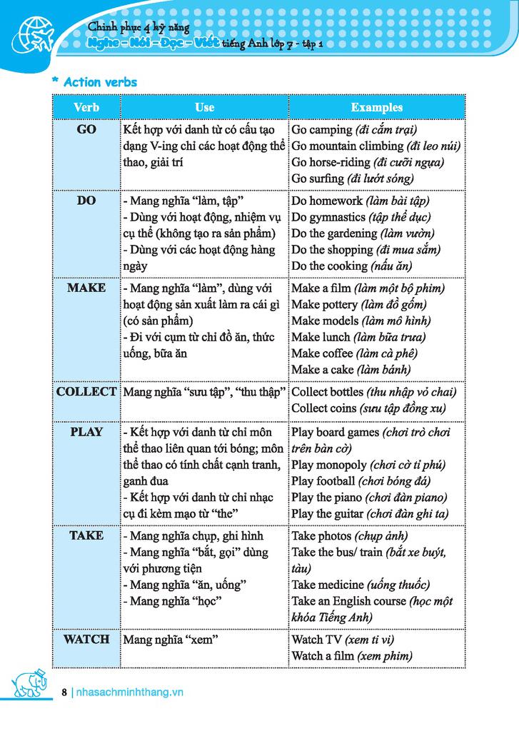 Cuốn sách Chinh phục 4 kỹ năng tiếng Anh (Nghe, Nói, Đọc, Viết) lớp 7 được biên soạn dành cho học sinh lớp 7, dựa trên sách giáo khoa Global Success của Bộ Giáo dục và Đào tạo. Sách tập trung vào việc rèn luyện các kỹ năng cơ bản như: Nghe, Nói, Đọc, Viết thông qua các bài tập và phát triển các kỹ năng giao tiếp tổng hợp về cách phát âm đúng, từ vựng phong phú; đọc các đoạn hội thoại, đoạn văn; viết câu hoặc đoạn văn theo mẫu, nói theo chủ đề từng bài học, nhằm giúp các em học sinh vận dụng và tổng hợp kiến thức hiệu quả nhất.