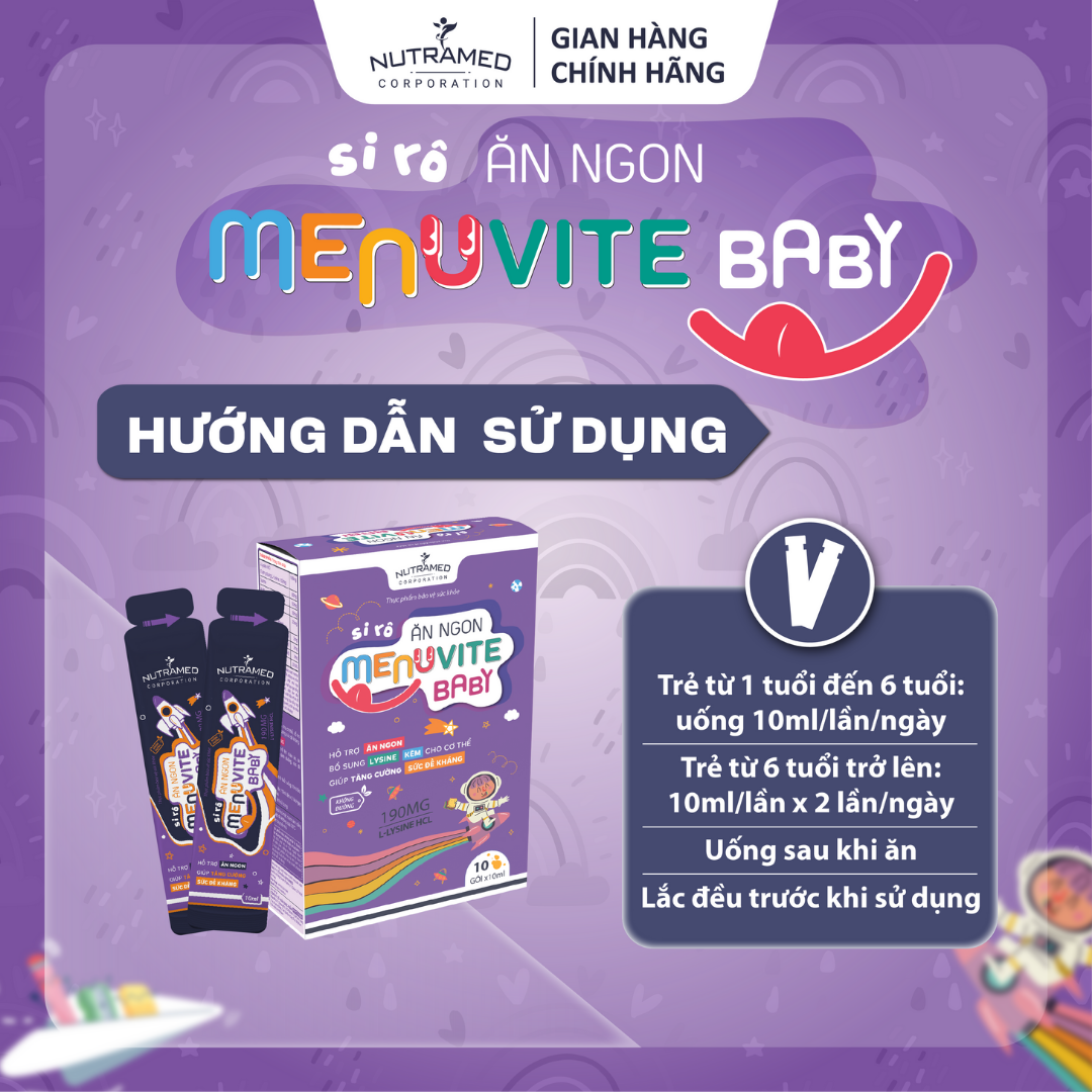 SIRO ĂN NGON MENUVITE BABY - Giải pháp bổ sung lysine, kẽm giúp ăn ngon tăng cường sức đề kháng