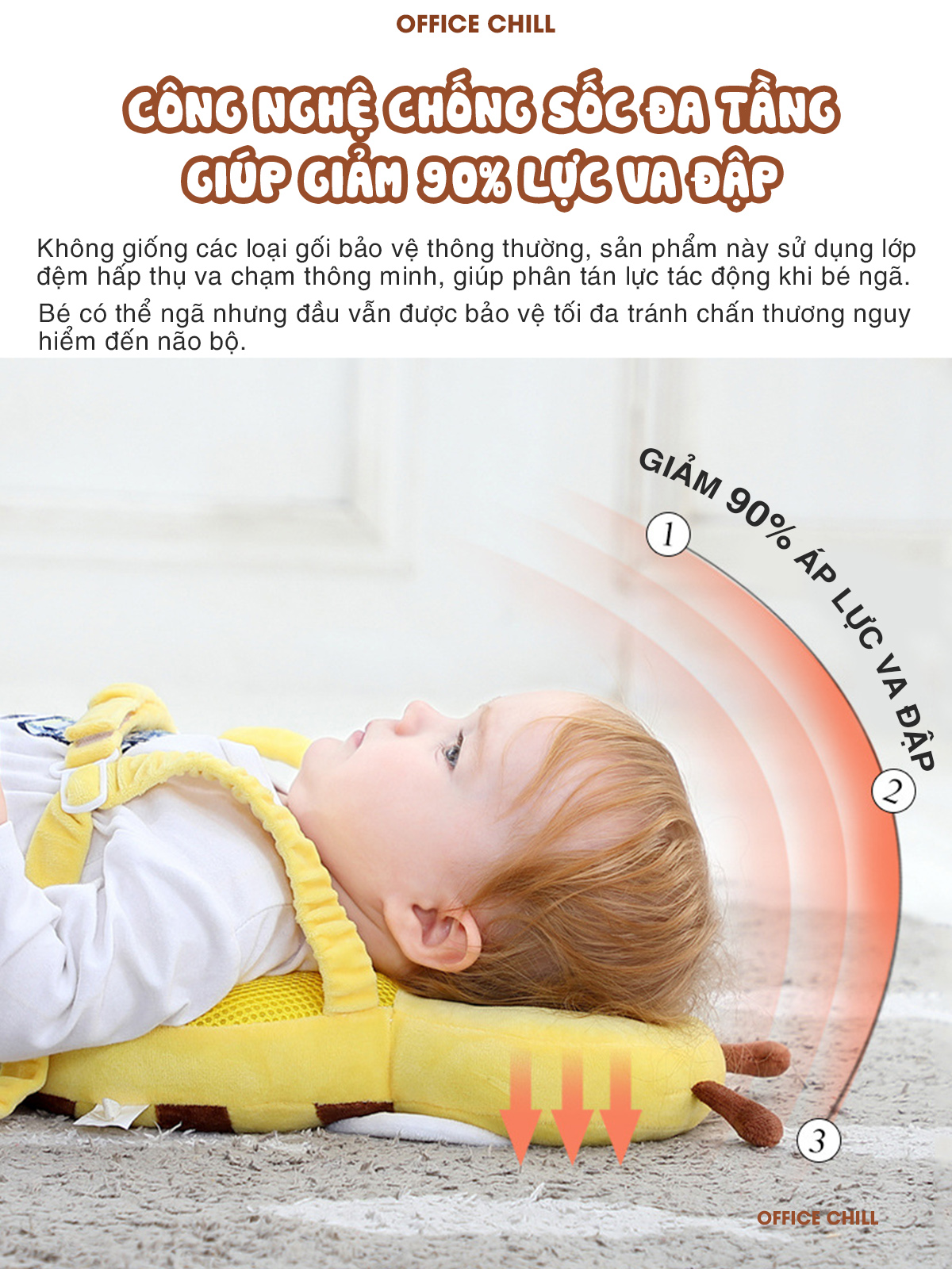 Gối Bảo Vệ Toàn Diện Đầu, Cổ, Cột Sống Cho Bé Tập Đi OFFICE CHILL Lá Chắn Đầu Tiên Bảo Vệ Trí Não Của Bé