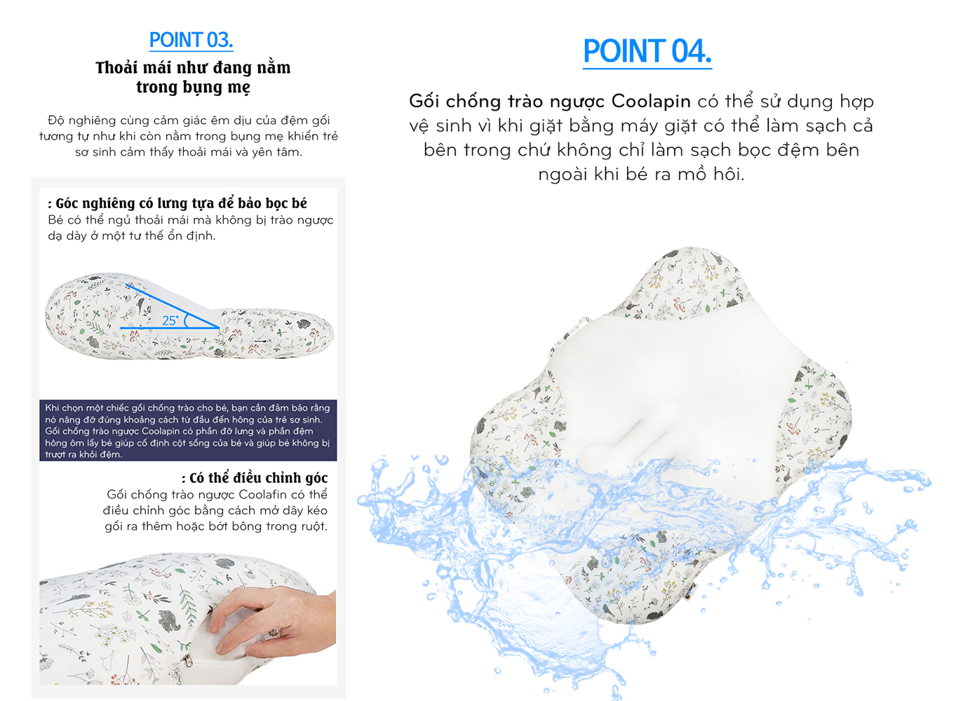 Gối chống trào ngược Bonnichon Coolapin giải quyết ba vấn đề cùng một lúc, chẳng hạn như trào ngược dạ dày, bé sốt khi sinh và bảo vệ cột sống cho bé