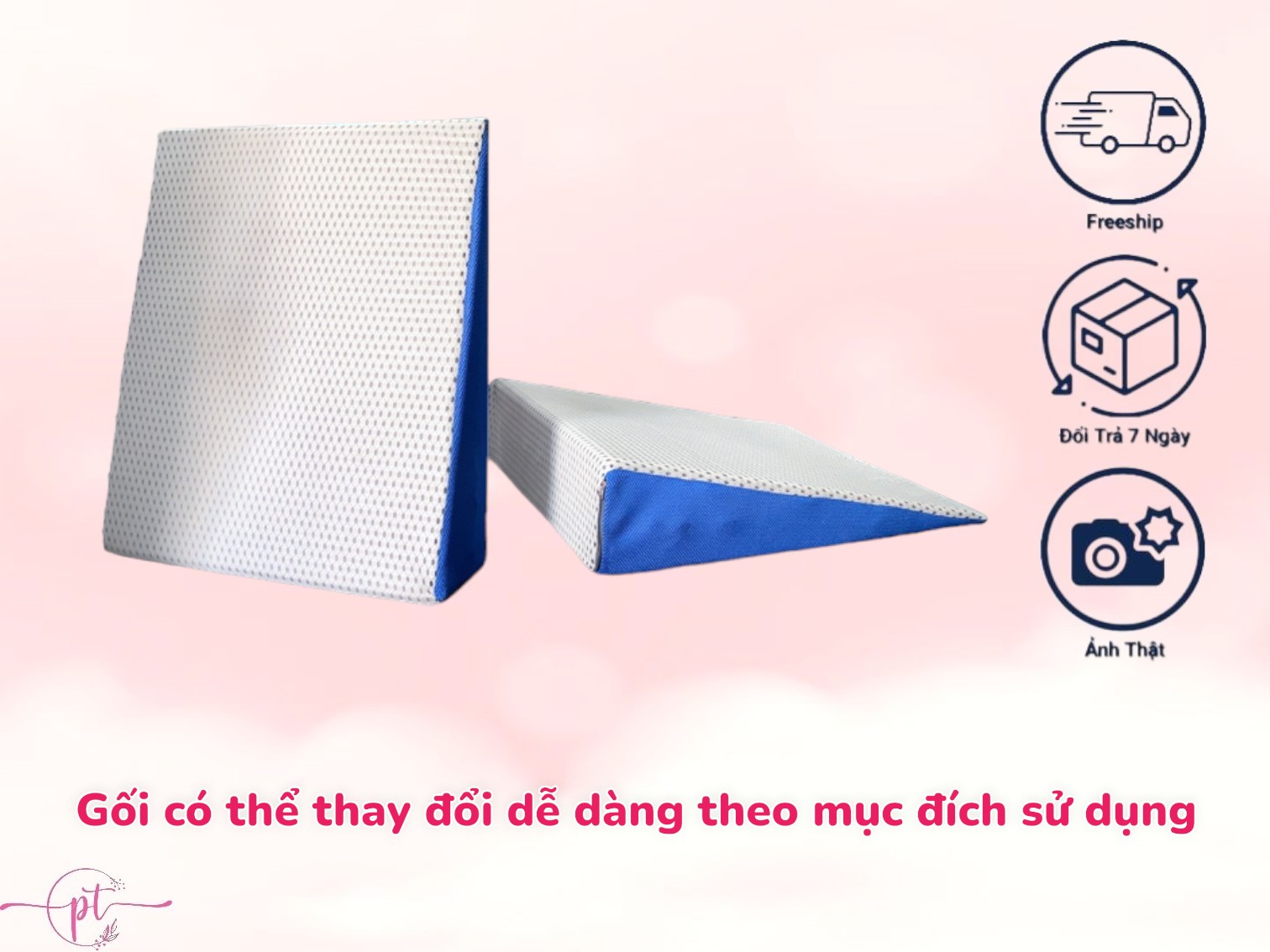 CAM KẾT: Cam kết đổi trả nếu hàng không giống mô tả và hoàn tiền 100% nếu sản phẩm lỗi. ────()()()────()()()──── Với hiết kế chuẩn của dòng gối chống trào ngược, hỗ trợ cân bằng đốt sống cổ một cách tự nhiên, giúp người nằm không bị cảm giác đau nhức vai gáy, hay bị giảm tuần hoàn máu lên não dẫn đến tình trạng mệt mỏi sau khi sử dụng sản phẩm. 3 tùy chọn độ cao đem lại góc nằm nghiêng khoa học phù hợp với thể trạng người Việt Nam, từ đó mang lại hiệu quả cao trong việc giảm tình trạng trào ngược dạ dày, nóng rát và cảm giác vướng ở cổ họng Hãy để gối chống trào ngược bên shop với thiết kế đúng CHUẨN Y TẾ KHUYẾN CÁO (70 x 60 x 18cm và 70 x 60 x 22cm) giúp bạn giảm thiểu và ngăn ngừa tình trạng trên nhé! Kích thước 70 x 60 x 14cm: Lựa chọn cho người trào ngược nhẹ, hoặc bé nhỏ tuổi. Kích thước 70 x 60 x 18cm: Lựa chọn khi tình trạng trào ngược không thường xuyên, và bạn quen nằm gối thấp. Kích thước 70 x 60 x 22cm: Lựa chọn khi tình trạng trào ngược xảy ra thường xuyên, hoặc bạn đã quen nằm gối cao. Cấu tạo sản phẩm: Lớp vỏ lưới bảo vệ 5D. Lớp vải thun lạnh mềm mại. Ruột gối Latex Foam. Sử dụng chất liệu Latex Foam được khử khuẩn, cho độ đàn hồi và thoải mái cao, thoáng khí hơn với thiết kế lỗ thông hơi lớn nhỏ. Lớp vỏ lưới bảo vệ 5D với thiết kế sợi đan xen độc đáo, mang lại cảm giác thông thoáng, không hầm bí, không trơn trượt khi nằm. Sản phẩm hoàn toàn không mùi, an toàn cho sức khỏe người nằm.
