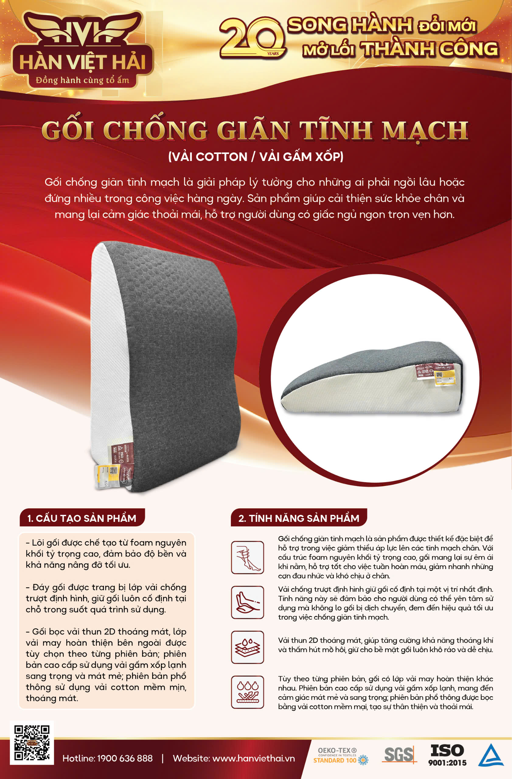 CÔNG DỤNG CỦA GỐI CHỐNG GIÃN TĨNH MẠCH CHÂN EMA - Tăng tuần hoàn máu từ chân về tim, giúp máu dễ dàng lưu thông qua tĩnh mạch về tim -> giảm tình trạng suy